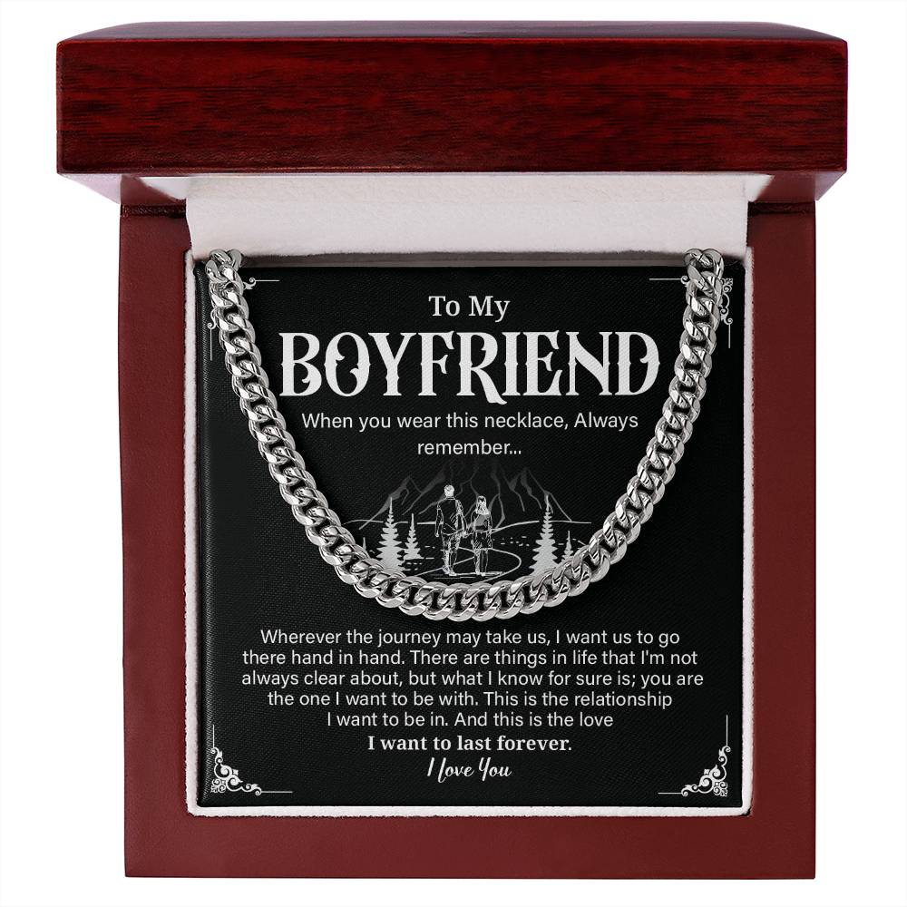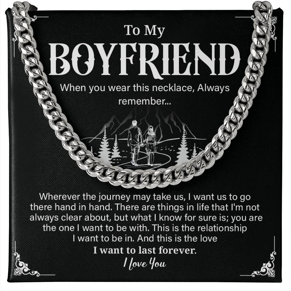 Give him a gift of a boyfriend necklace that will make his day memorable. Be it an anniversary, a birthday or just a reminder that you care about him so much, this Cuban chain has become a popular gift. Think of a meaningful gift that is both emotional and fashionable, the ideal boyfriend necklace with message card he will never forget.