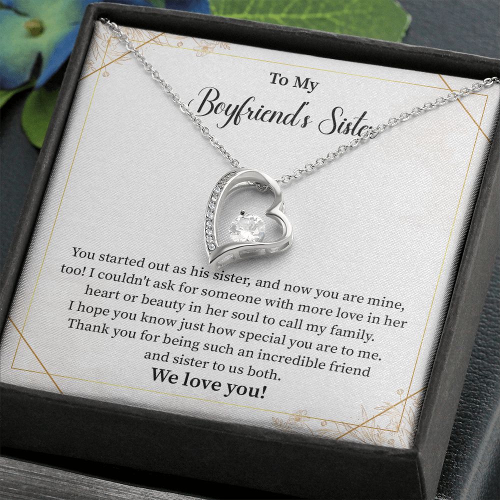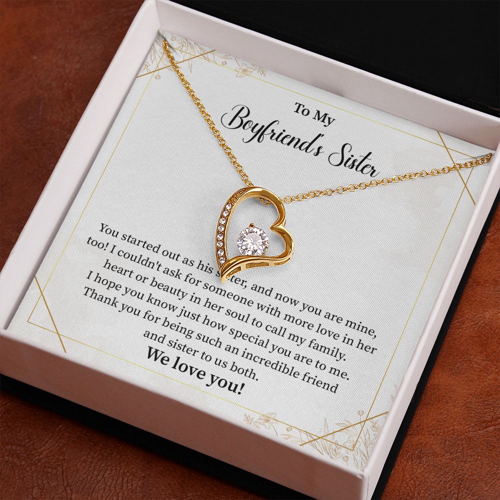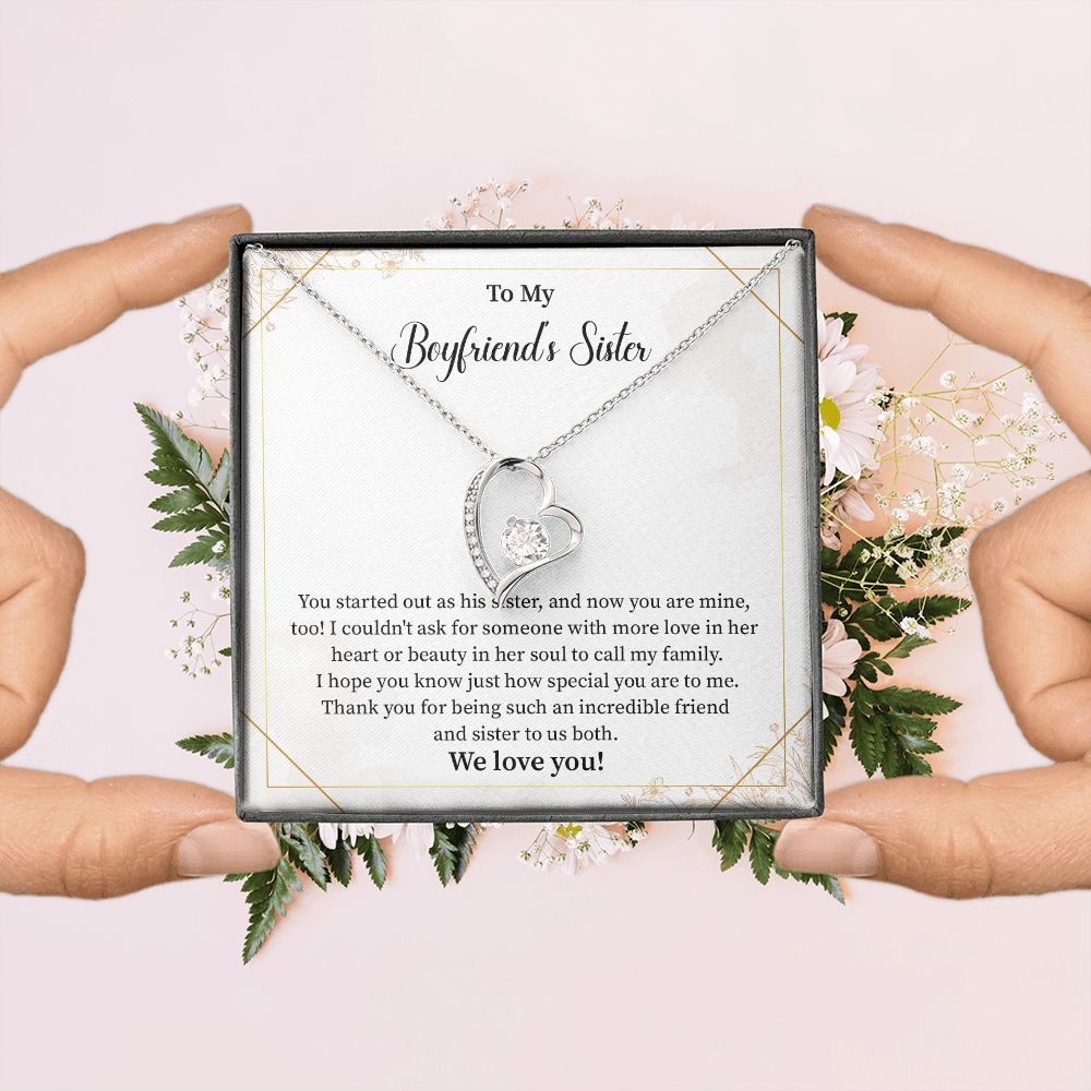 The dazzling Forever Love Necklace is sure to make her heart melt! This necklace features a stunning 6.5mm CZ crystal surrounded by a polished heart pendant embellished with smaller crystals to add extra sparkle and shine. Beautifully crafted with either a white gold or yellow gold finish, be sure to give her a classic gift she can enjoy everyday.