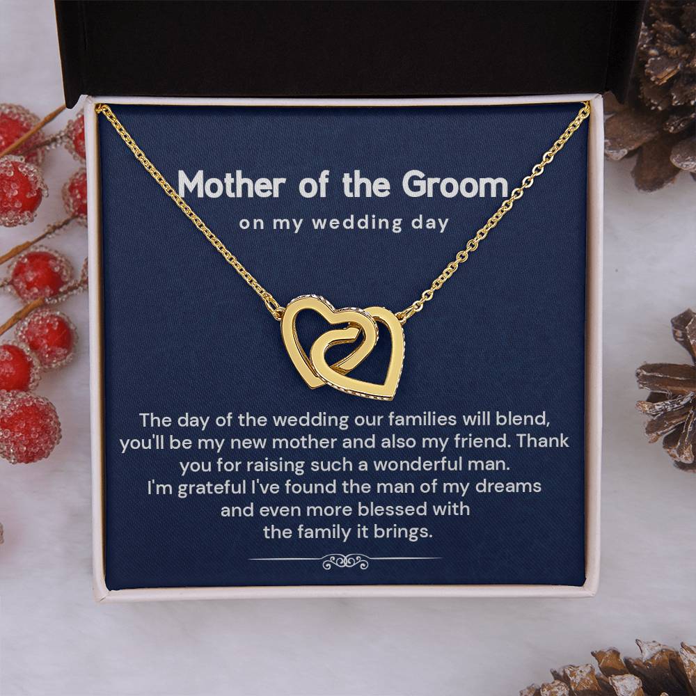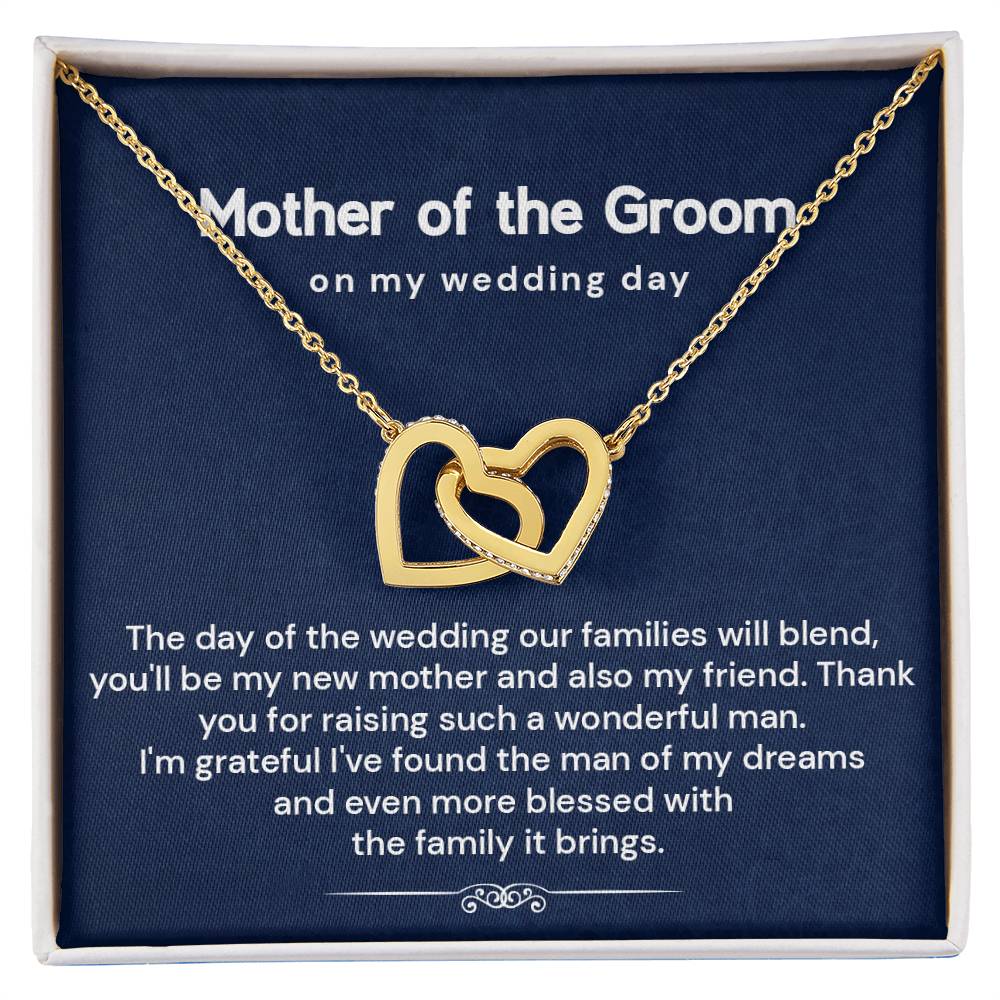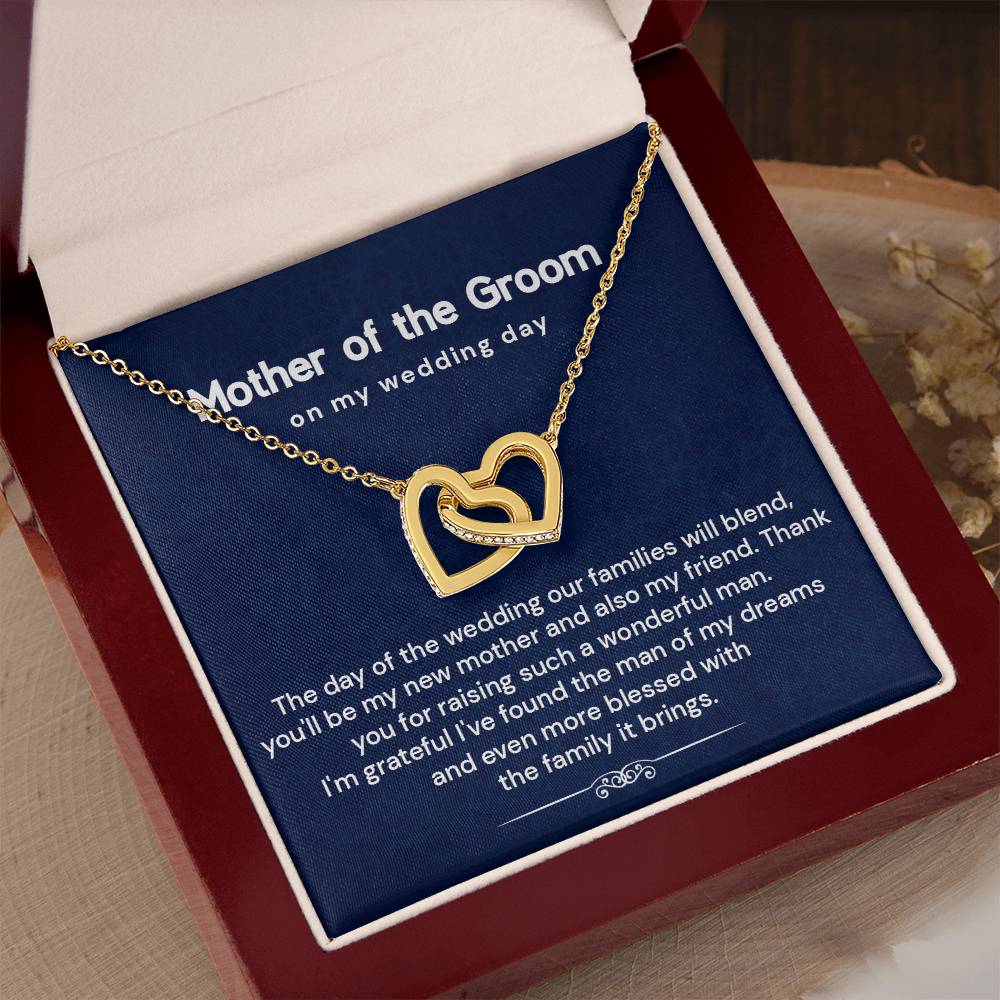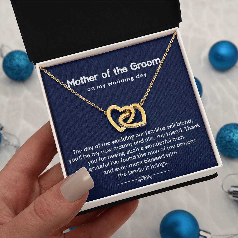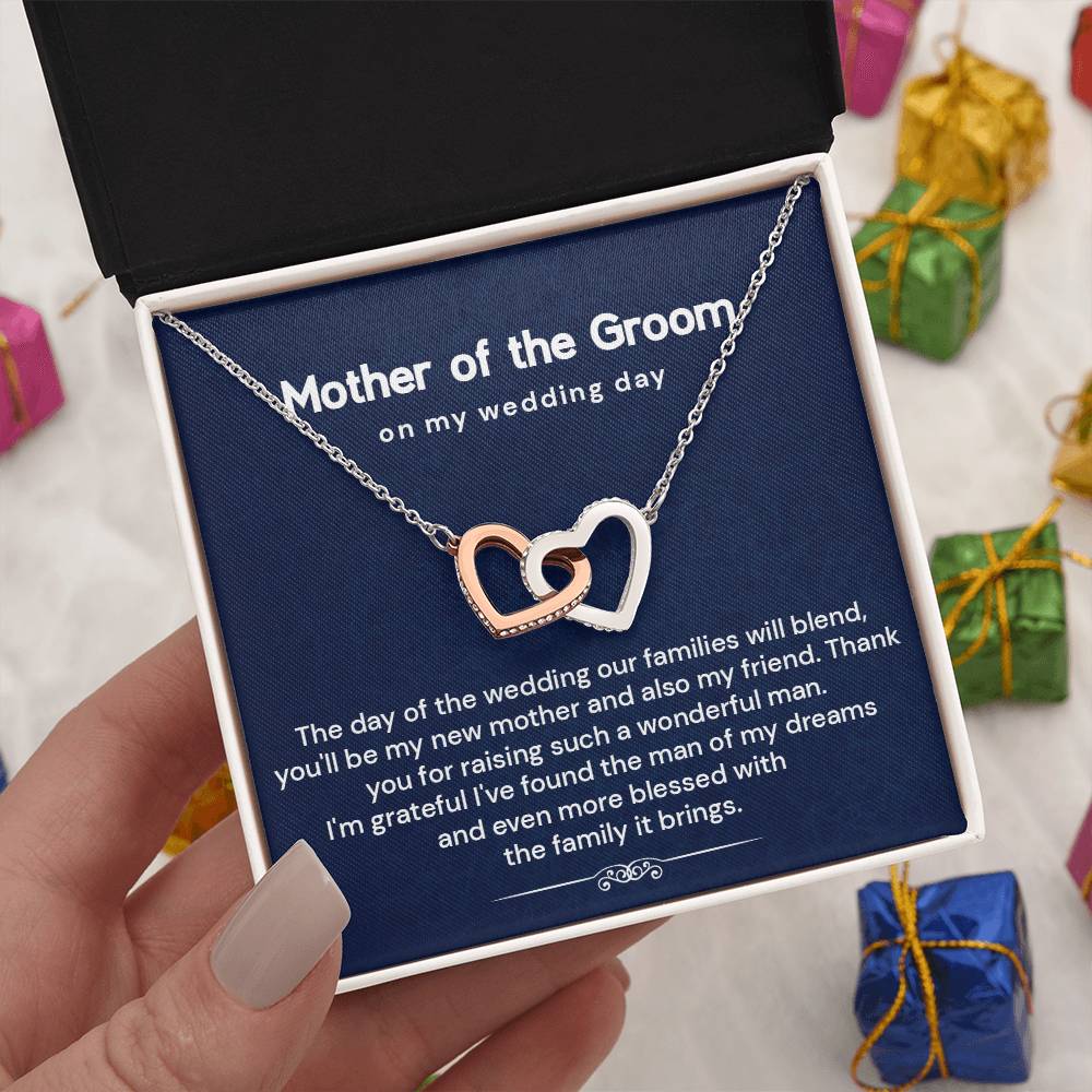 Looking for the perfect mother of the groom gift from bride? This elegant interlocking hearts necklace comes with a heartfelt message card, making it one of the most thoughtful wedding day gifts for groom’s mom. Designed to celebrate love, gratitude, and the joining of two families, it's ideal for rehearsal dinners or bridal showers.