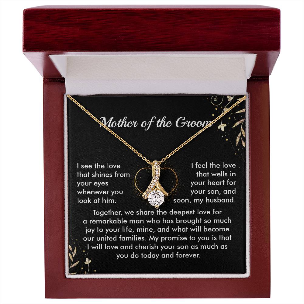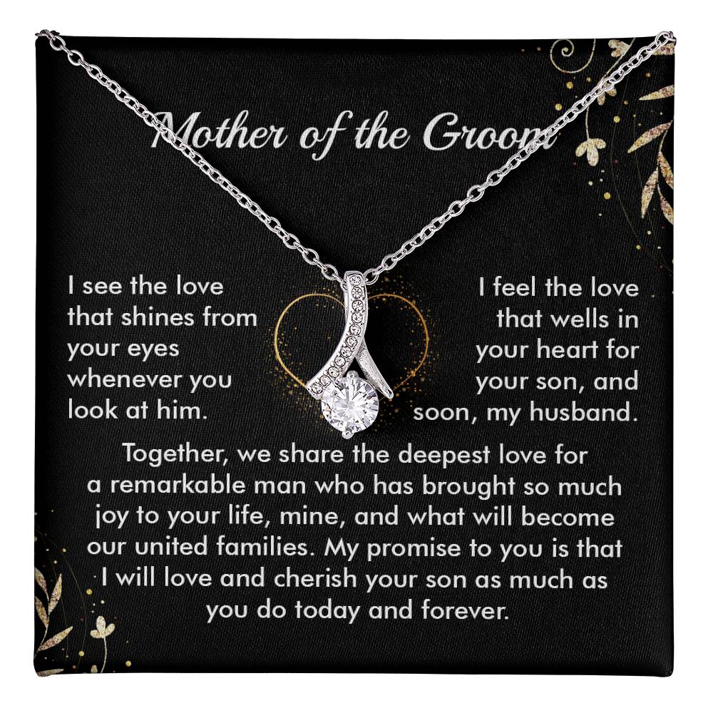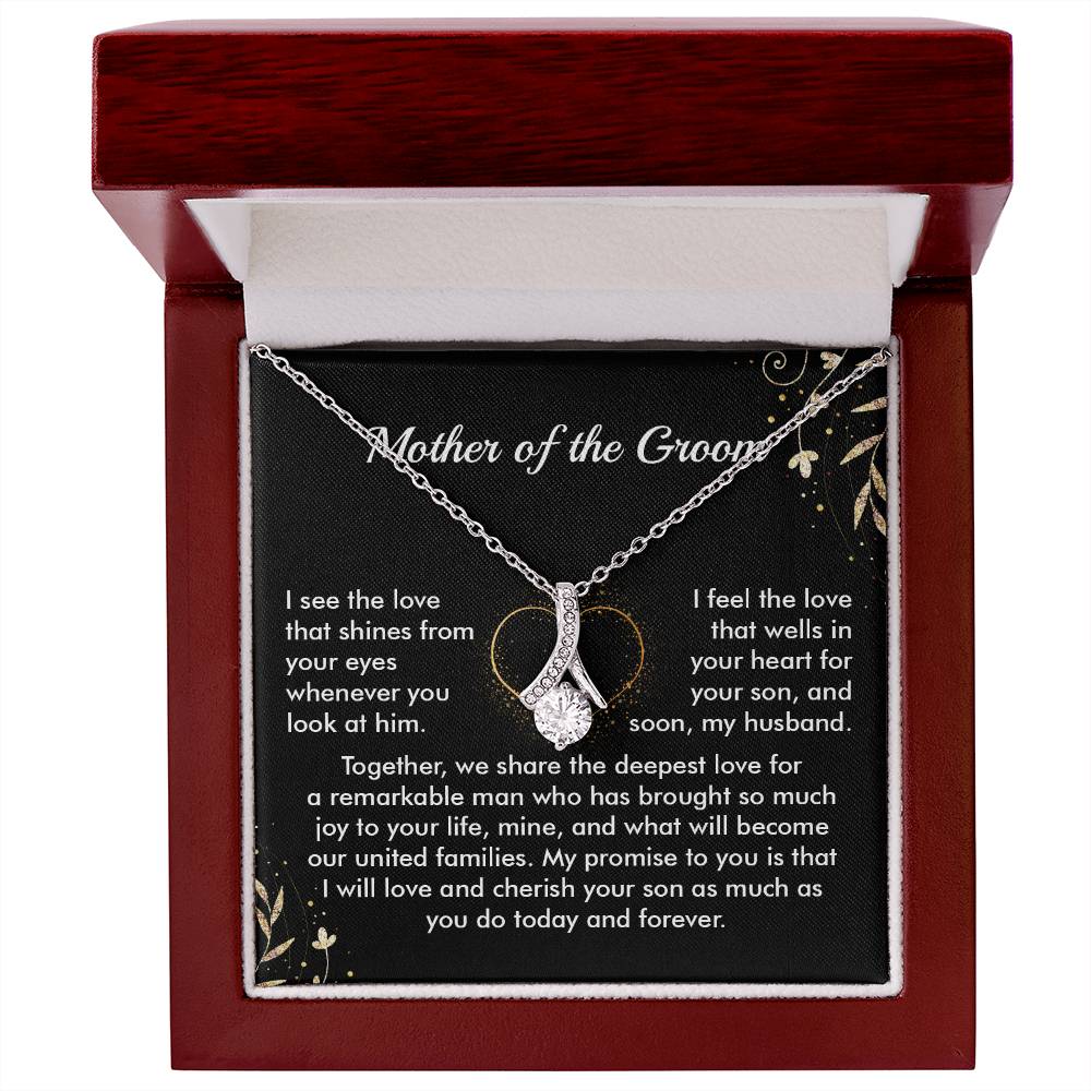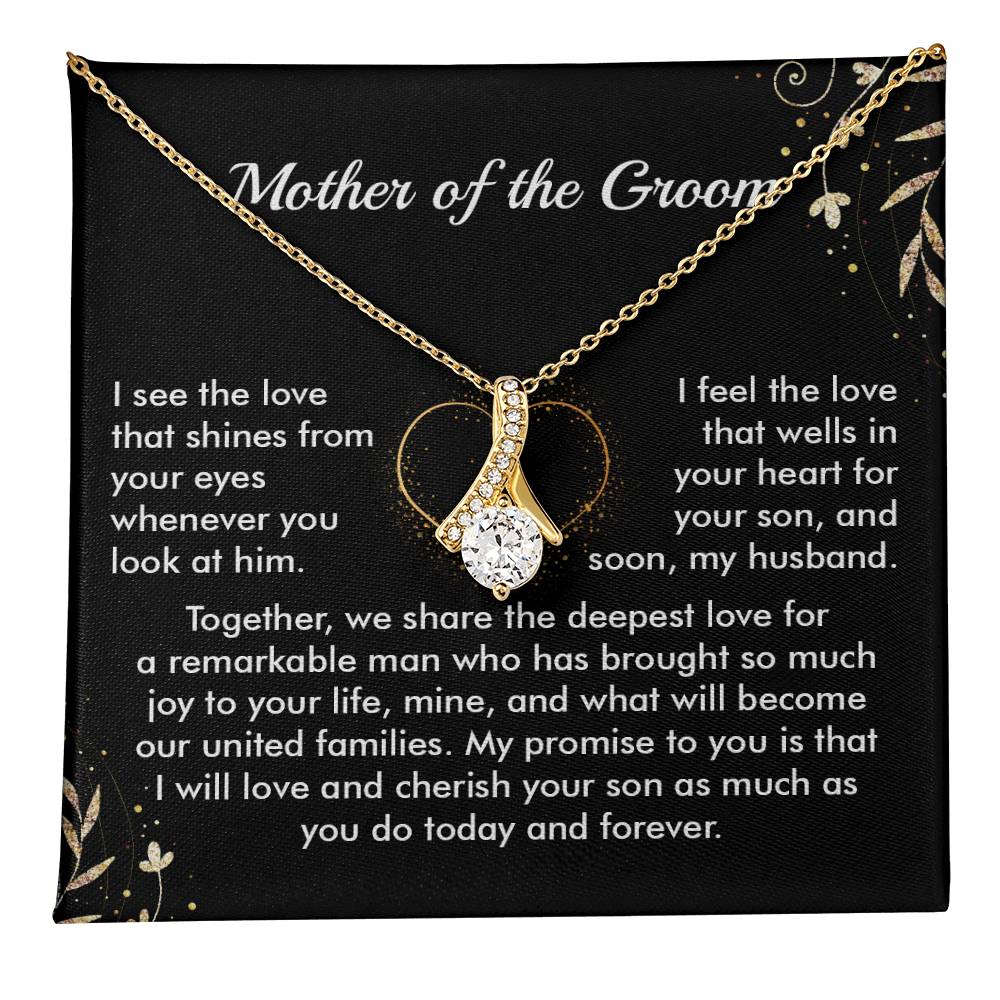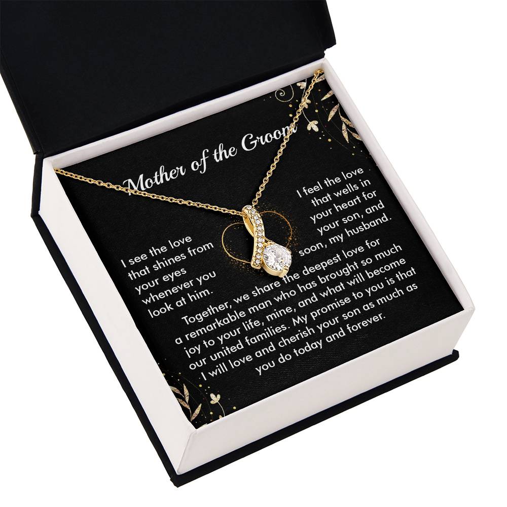 Let the mother of the groom feel special with this beautiful necklace gift presented by the bride on the wedding day. The heart-shaped pendant is made with elegance and gratitude and comes with a meaningful message card, allowing you to honor the woman who raised your loved one. Great as a gift for a wedding, a bridal thank you or a keepsake for the groom’s mom.