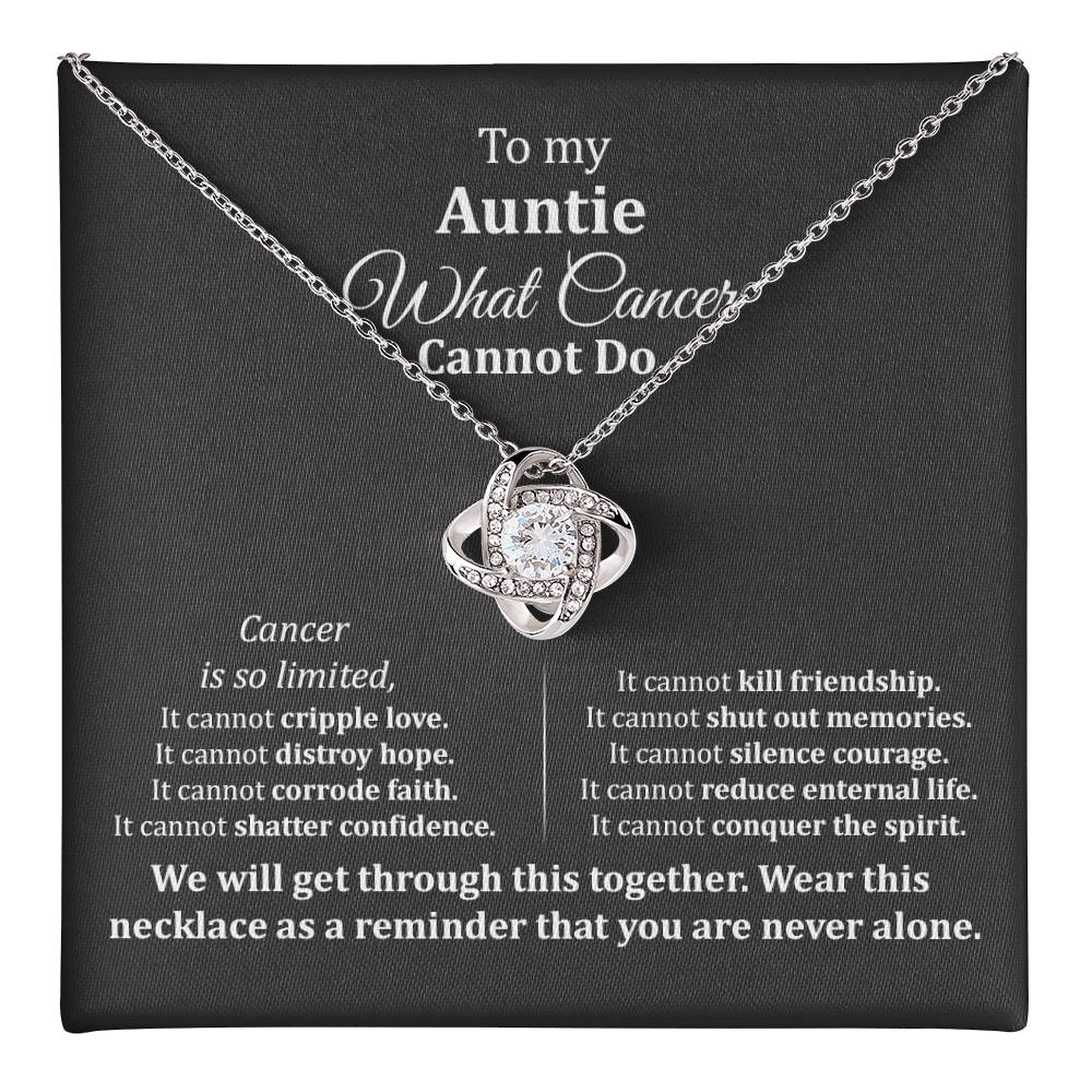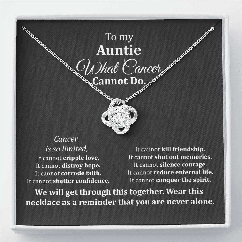 Give your aunt, who is either in the middle of cancer or has conquered it, a reminder of your support and strength with this classy necklace. This keepsake is intended to comfort your aunt that no disease can break your bond or weaken her.