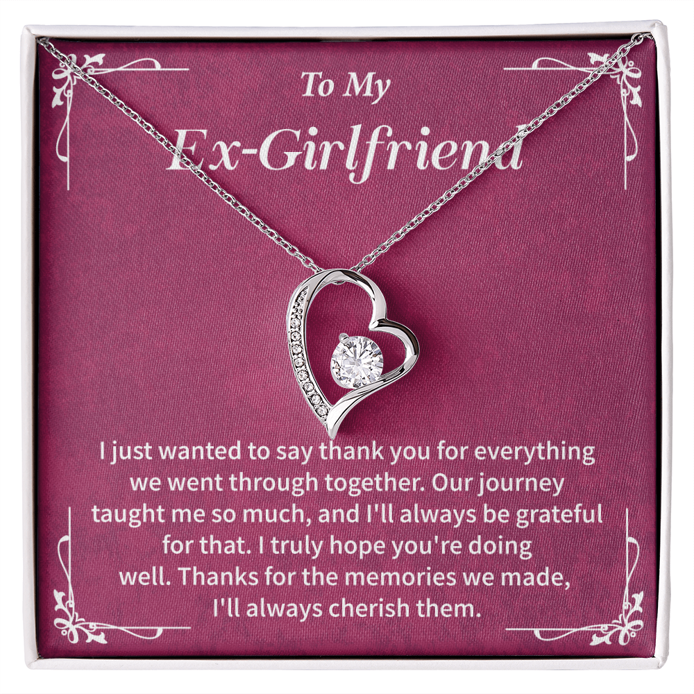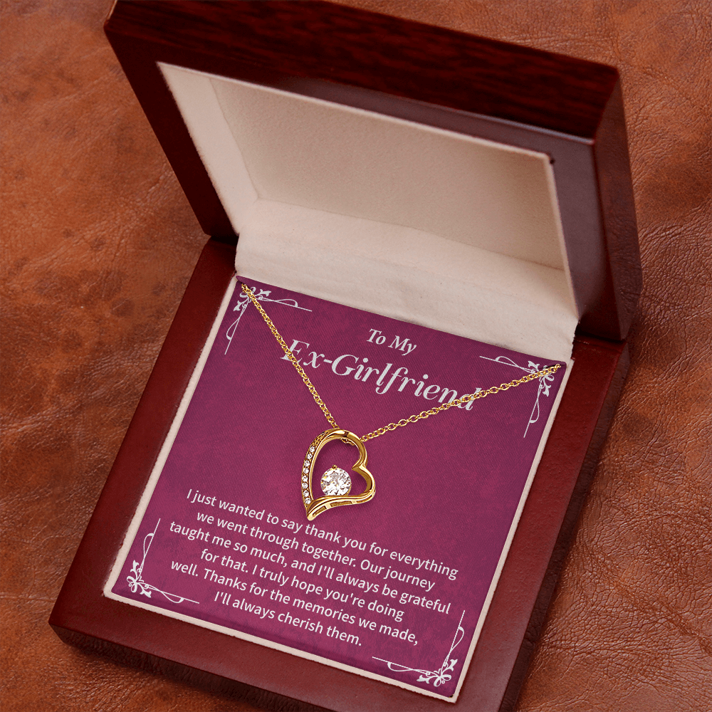 Leave with grace and gratitude. This touching heart pendant necklace is a lovely and respectful way of saying thank you to the ex-girlfriend for the shared memories, with a heartfelt message of gratitude and peace.