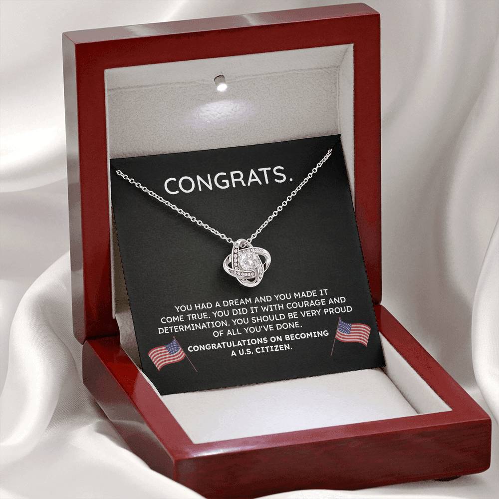 Imagine her reaction receiving this beautiful Love Knot Necklace. Representing an unbreakable bond between two souls, this piece features a beautiful pendant embellished with premium cubic zirconia crystals. Surprise your loved one with this gorgeous gift today!
