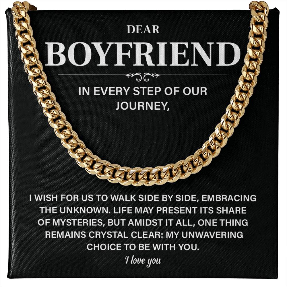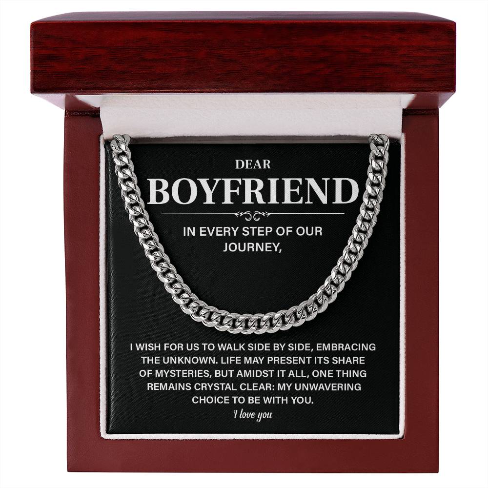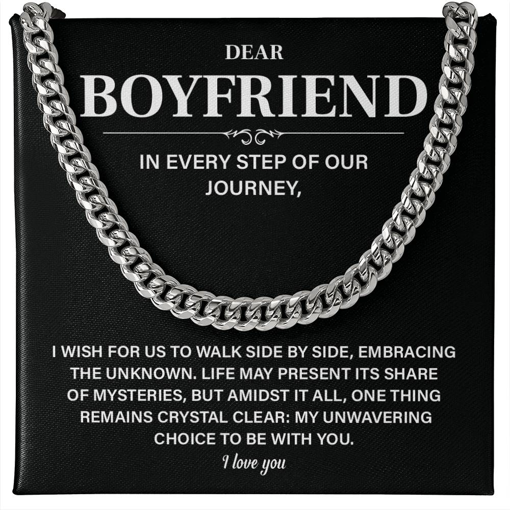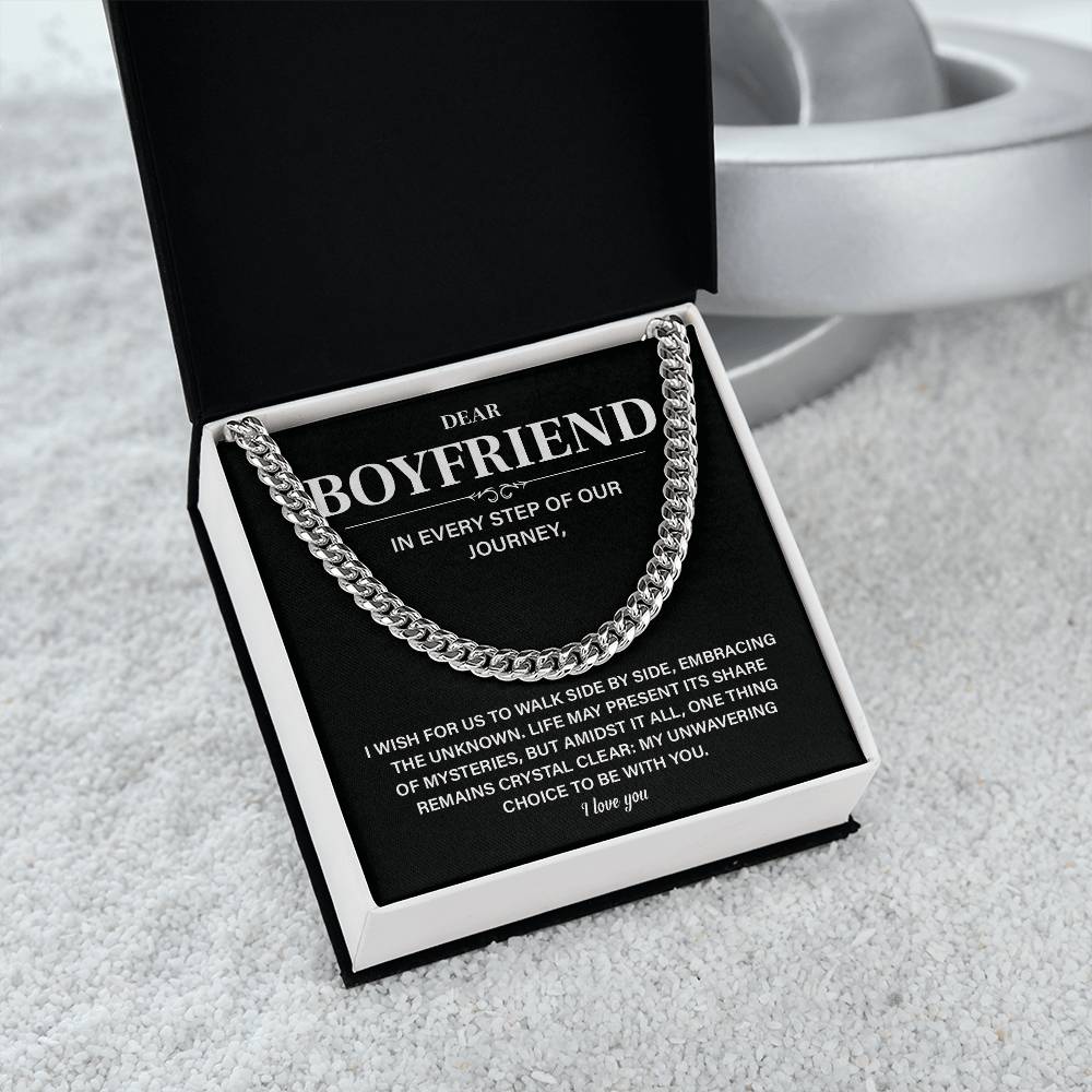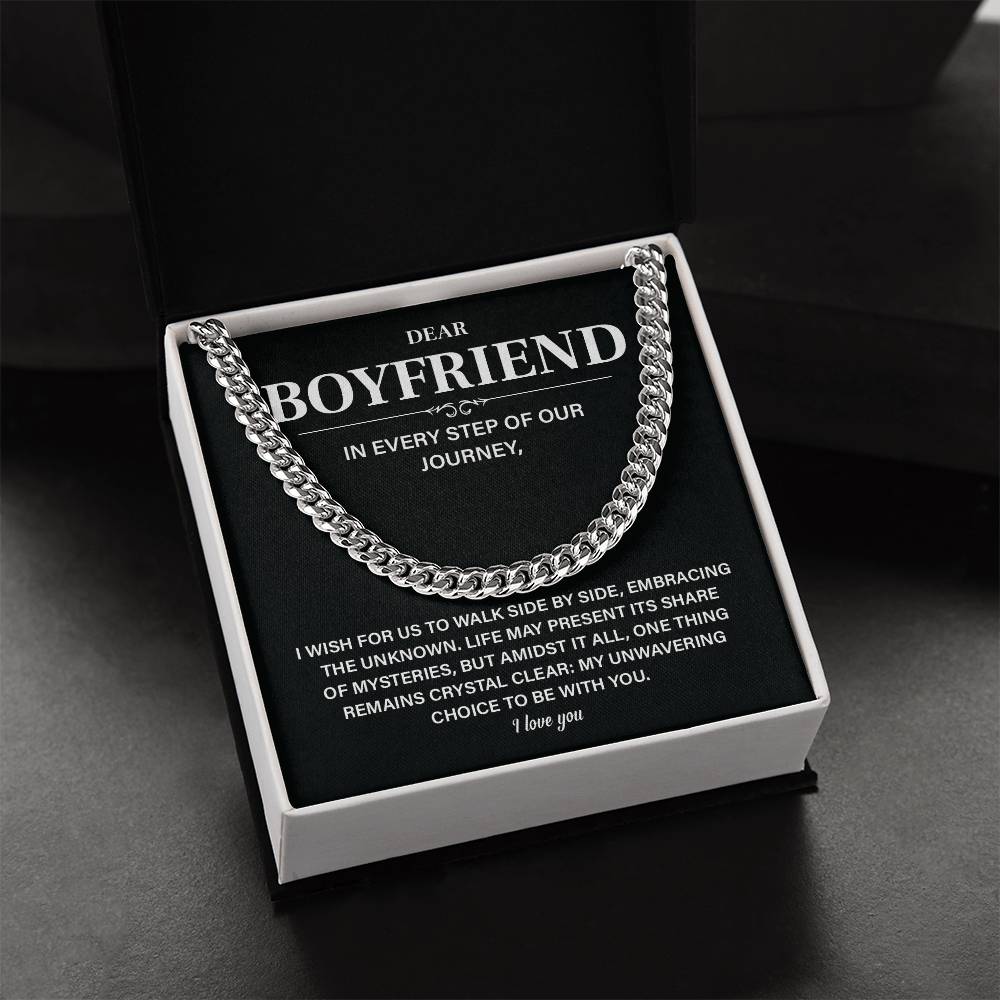 Make your boyfriend surprised with this daring Cuban chain necklace with a romantic message. This stylish and personalized necklace is the best girlfriend to boyfriend gift that can be given on anniversaries, on Valentine Day, birthday, or any other day. This boyfriend jewelry gift is a strong declaration of love and attachment and it can be worn every day or on a special occasion.