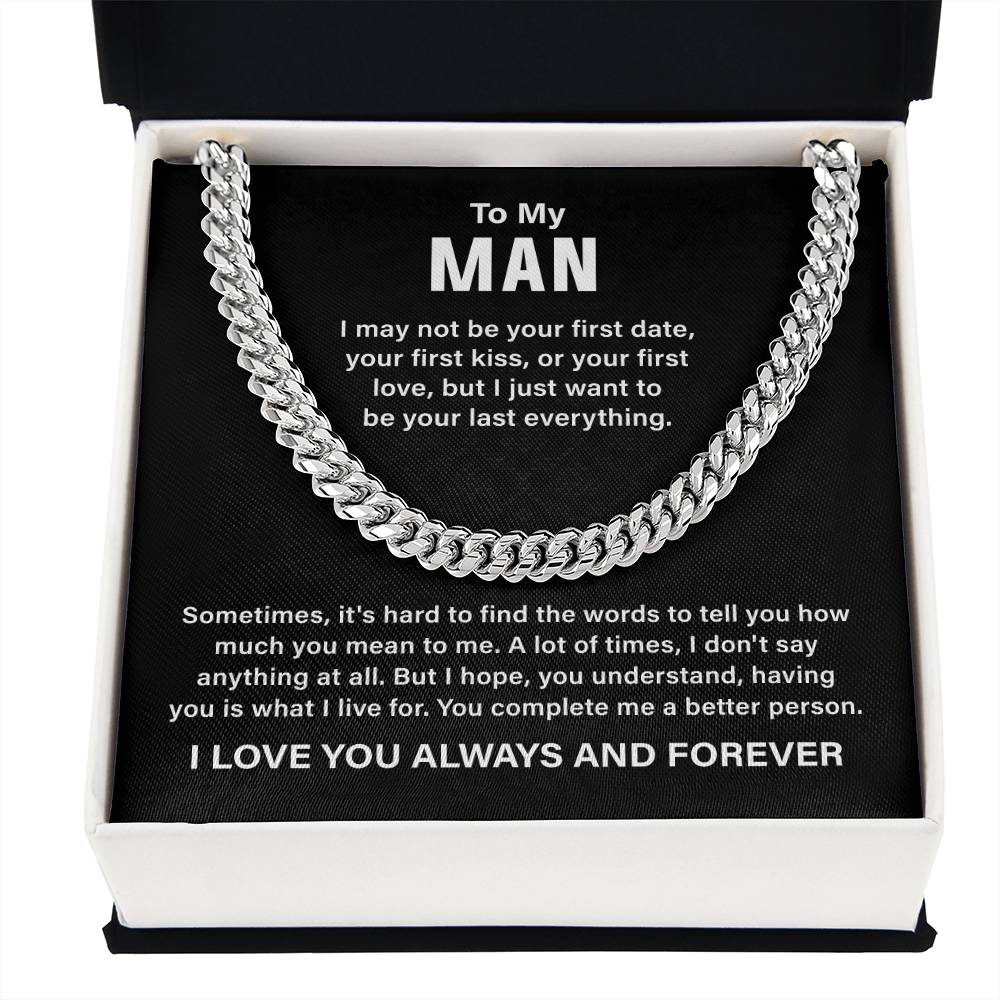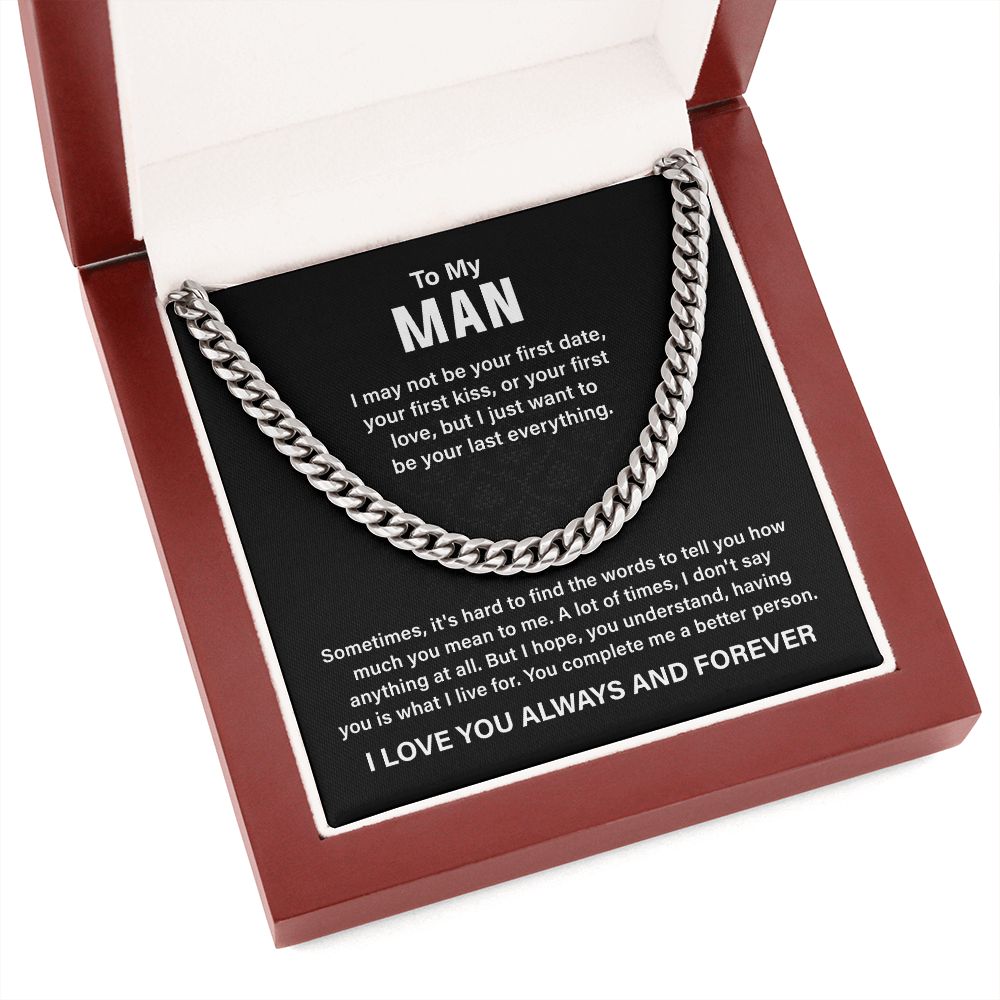 Cuban Chain Necklace Gift for Man with Love Message Card