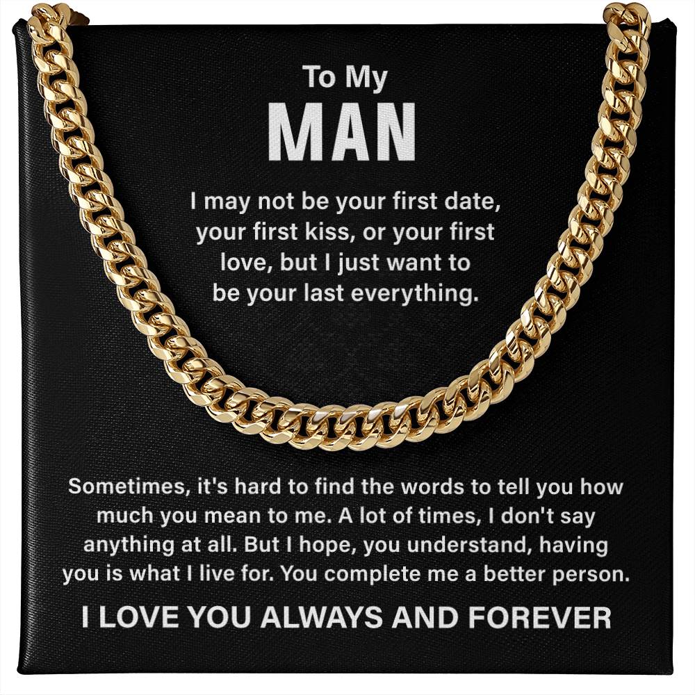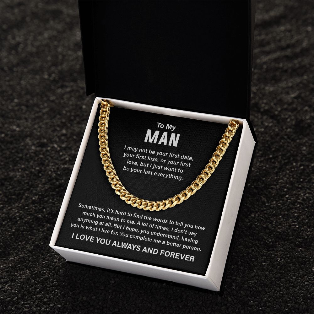 Celebrate the strength of your bond with this bold and meaningful Cuban Chain Necklace Gift for Man. Crafted for the man who means everything to you, this statement piece comes with a heartfelt message that speaks the words straight from your heart.