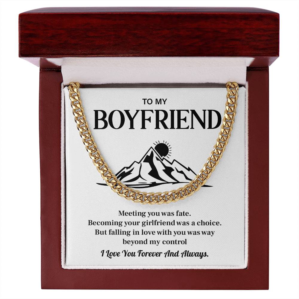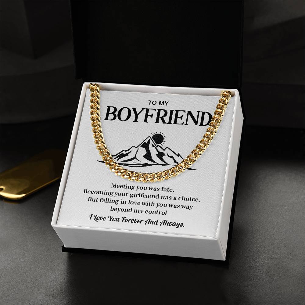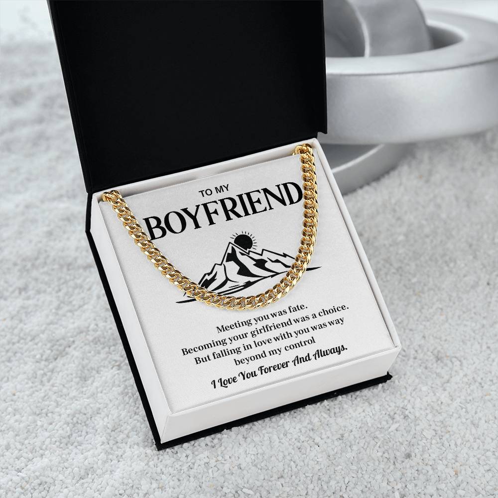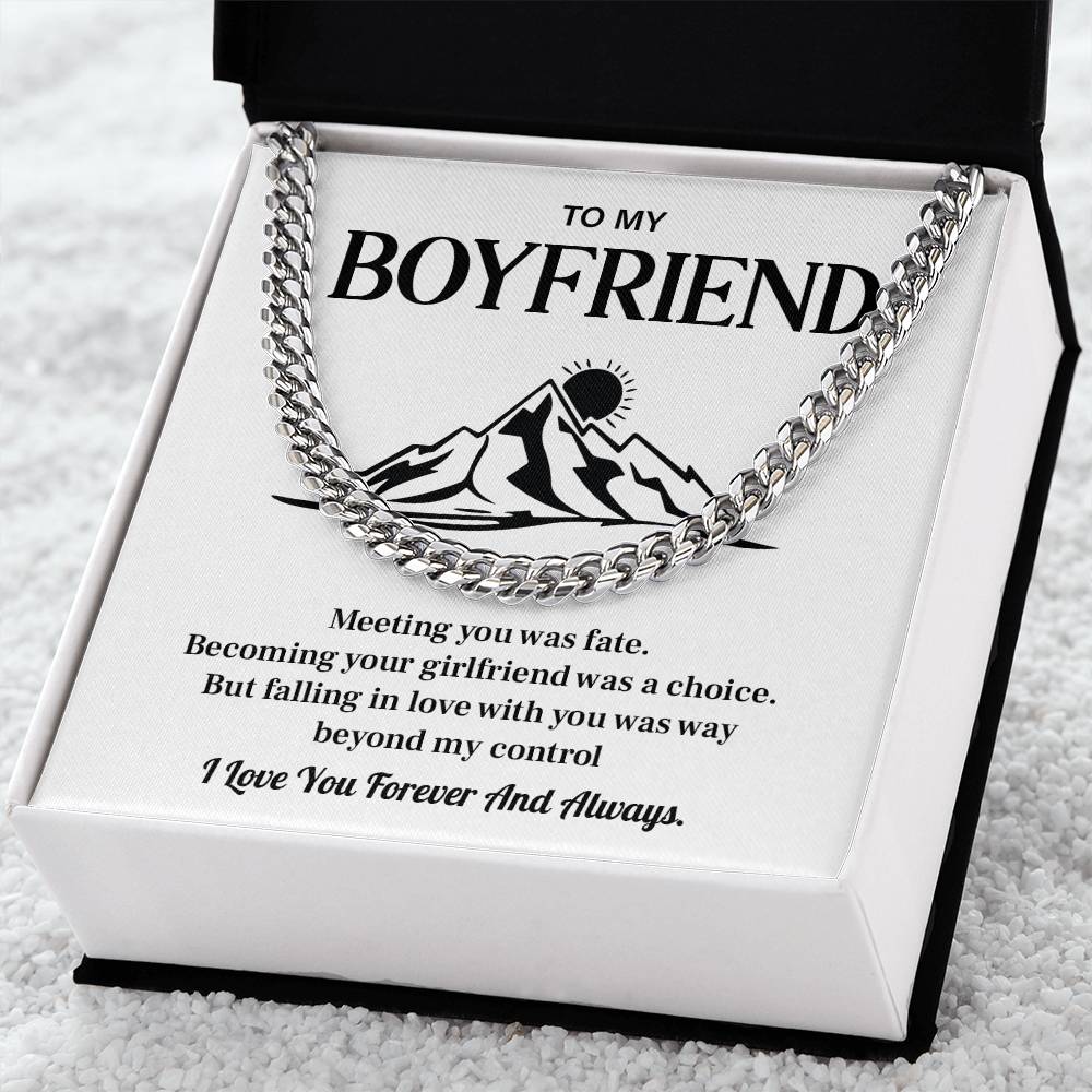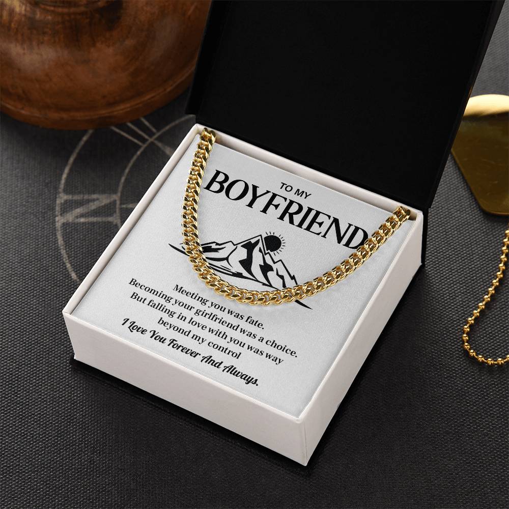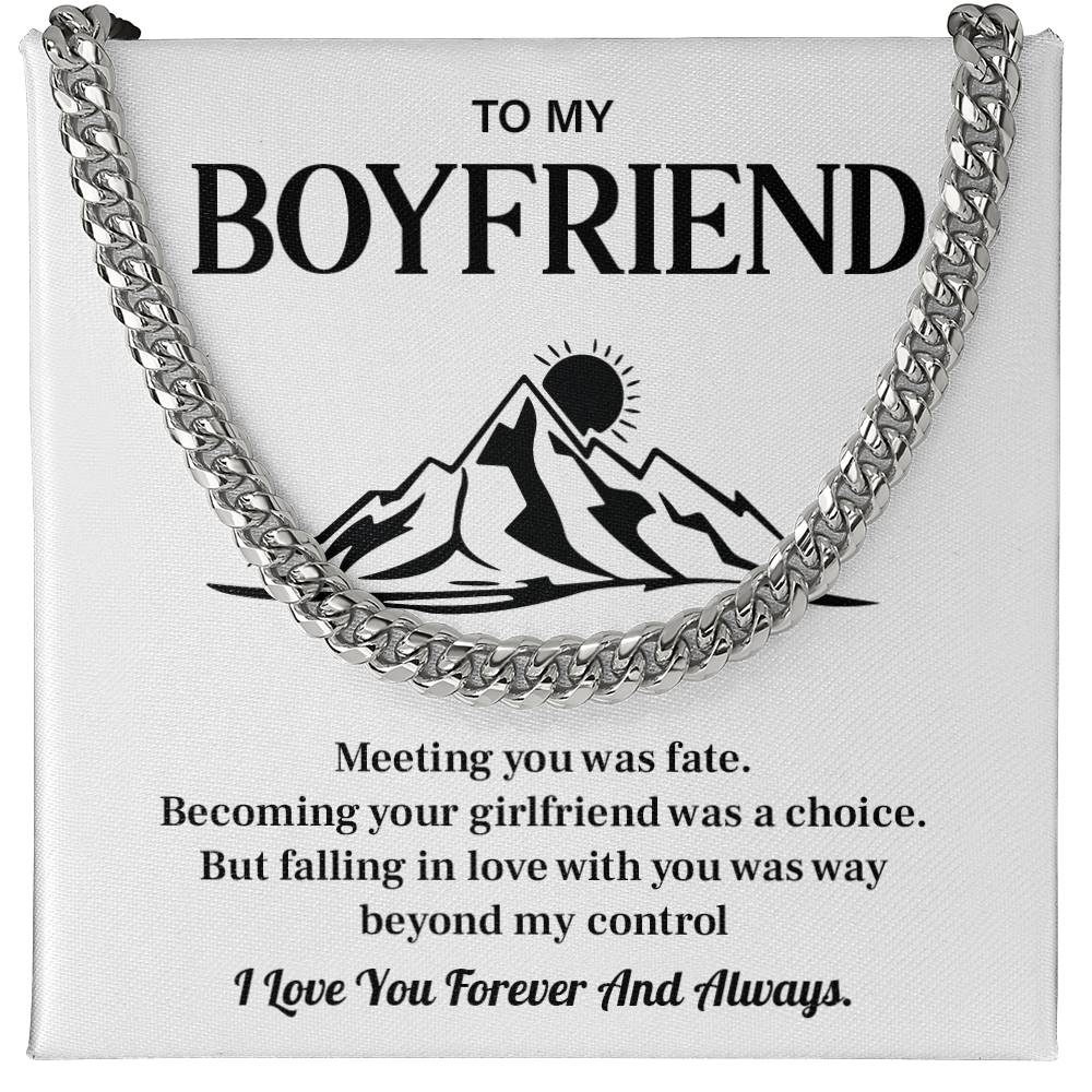 Amaze your boyfriend with a daring and fashionable Cuban chain necklace that will express everything that is in your heart. It is an ideal romantic gift to your boyfriend on anniversaries, Valentine, his birthday, or any other time. This strong chain is made to show true love and is presented in a luxury gift box with a touching message card.