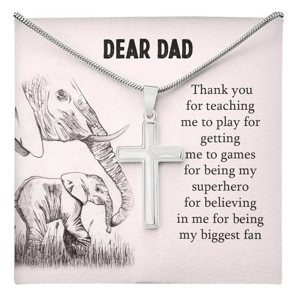 Dad Cross Necklace Gift from Daughter or Son – Thank You Message Card
