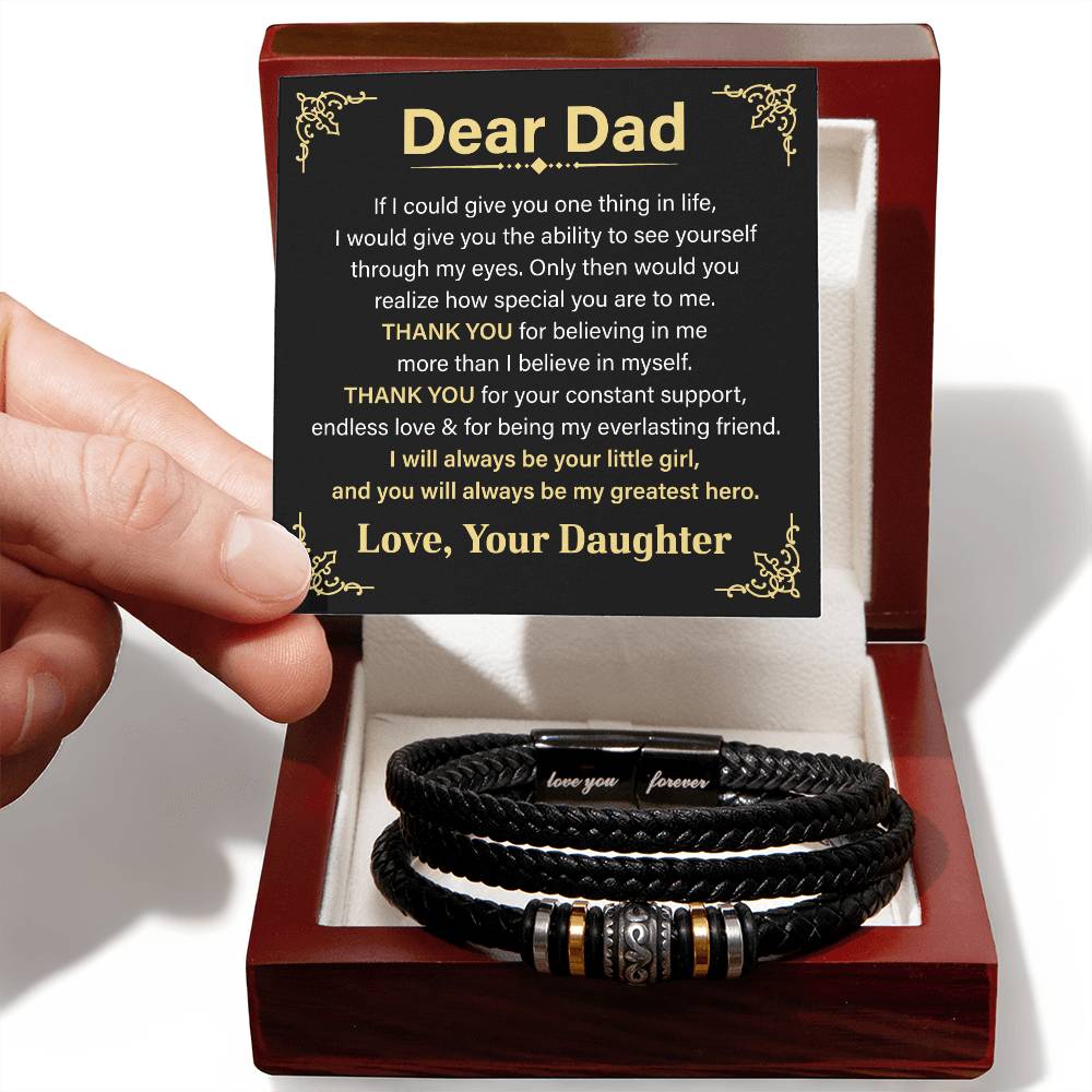Dad Leather Bracelet Gift From Daughter With Message Card