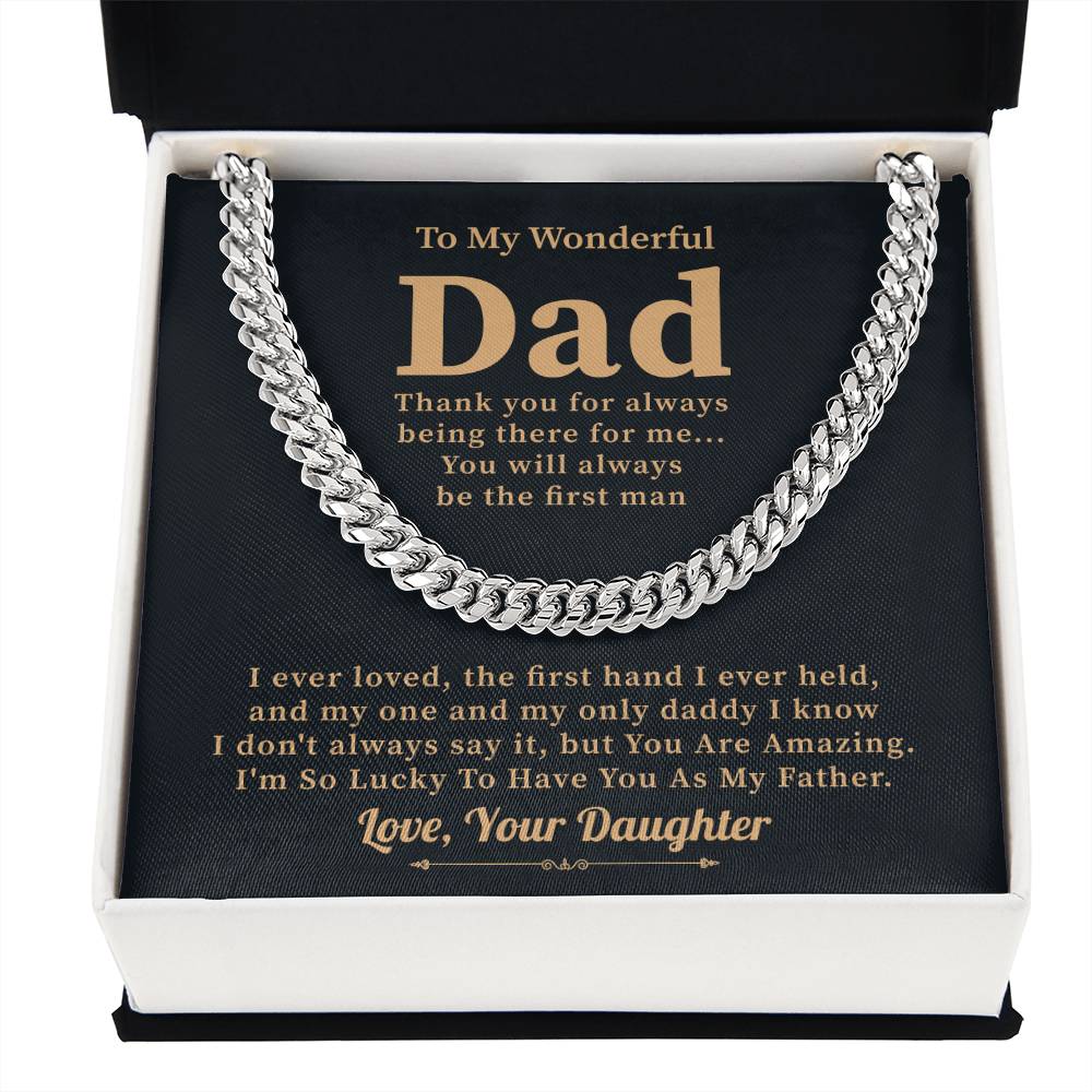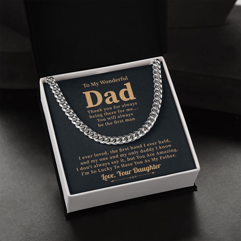 Celebrate your irreplaceable bond with your dad through this bold Cuban Link Chain necklace. A touching gift from a daughter to show appreciation, love, and admiration.