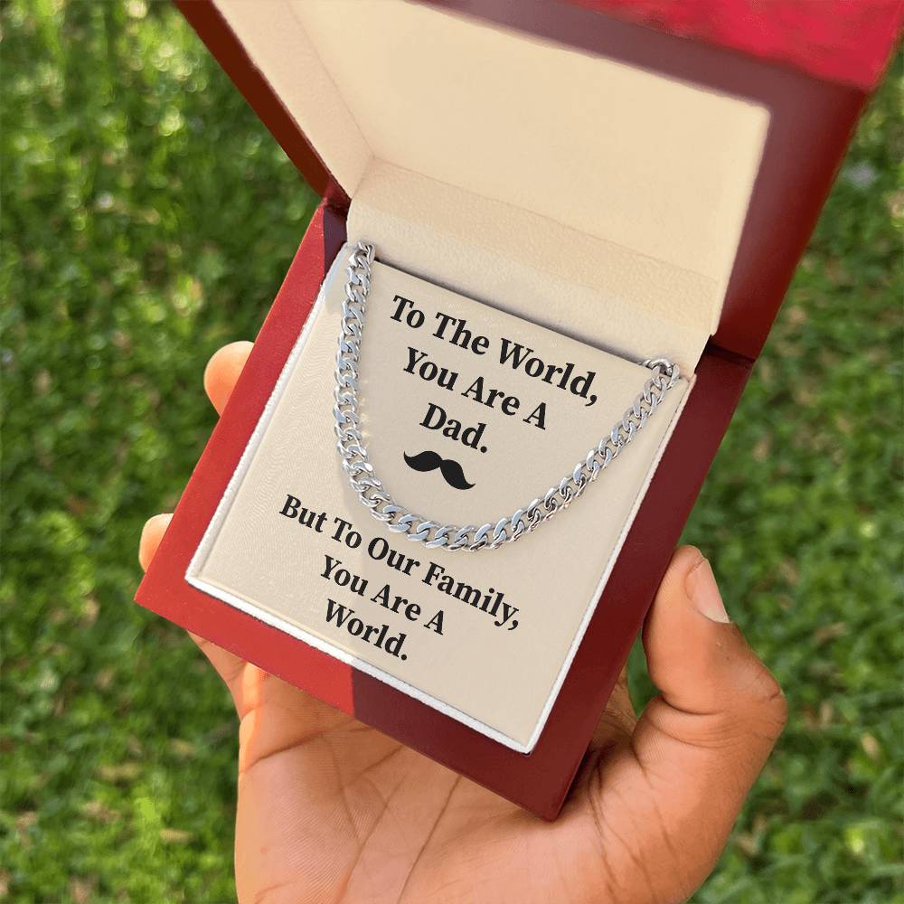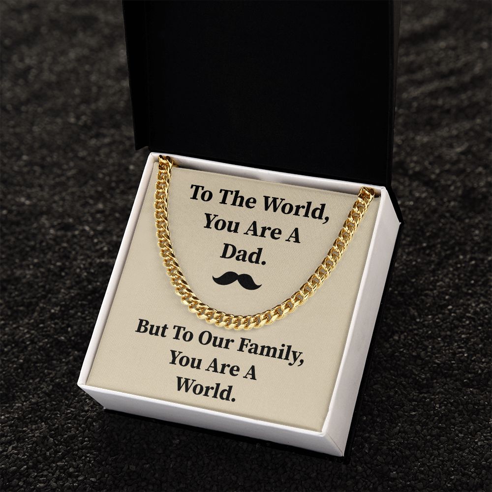 Celebrate the role your dad plays in your life with this heartfelt Cuban Link Chain necklace. A perfect gift from the family to show appreciation and love.
