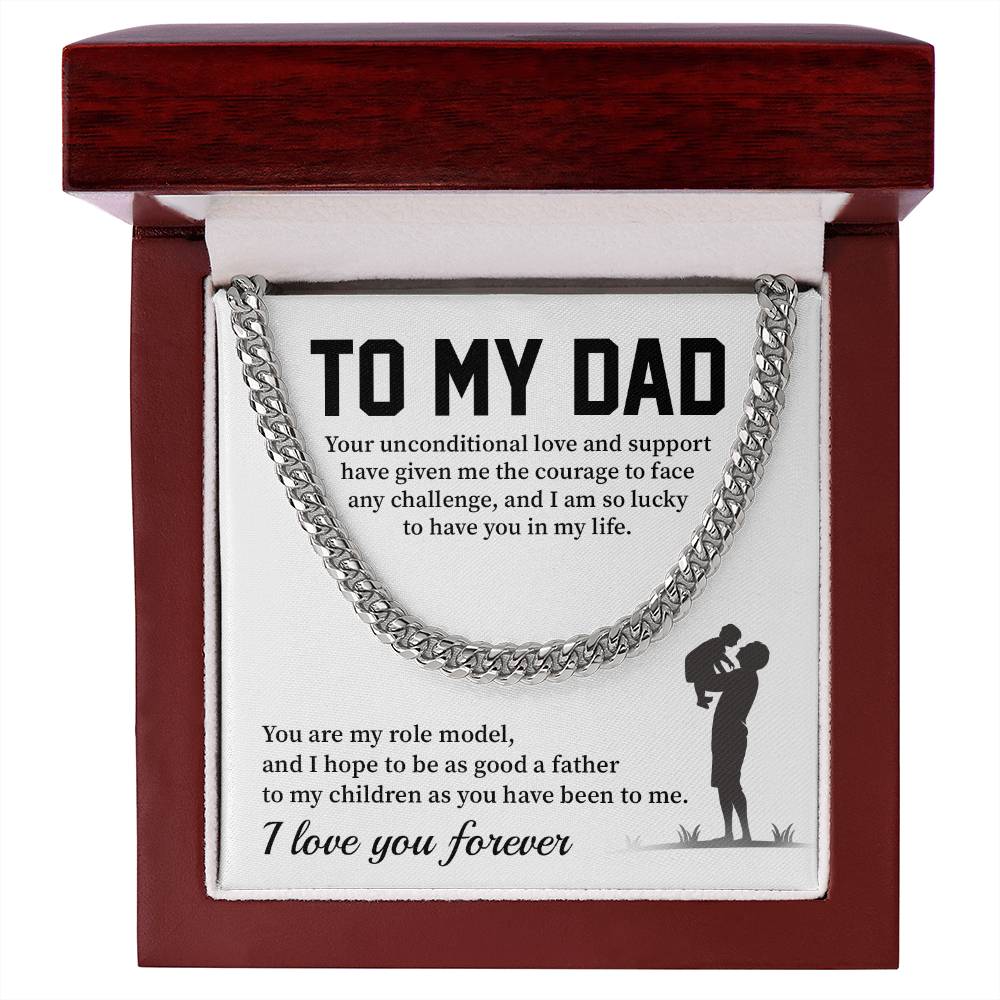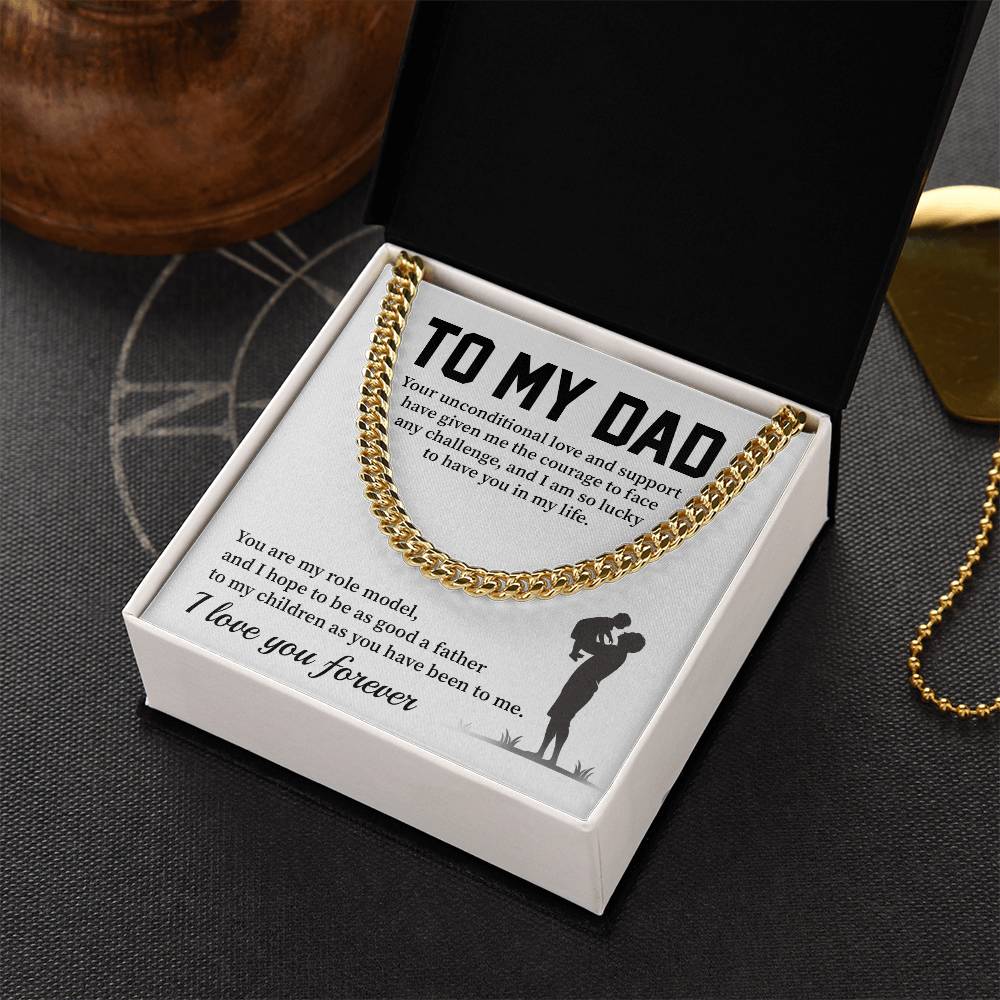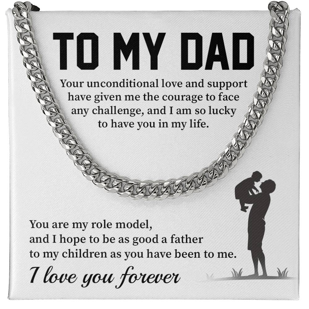Celebrate your dad’s unconditional love and lifelong support with this bold Cuban Link Chain necklace. A perfect keepsake from a son who looks up to his father.