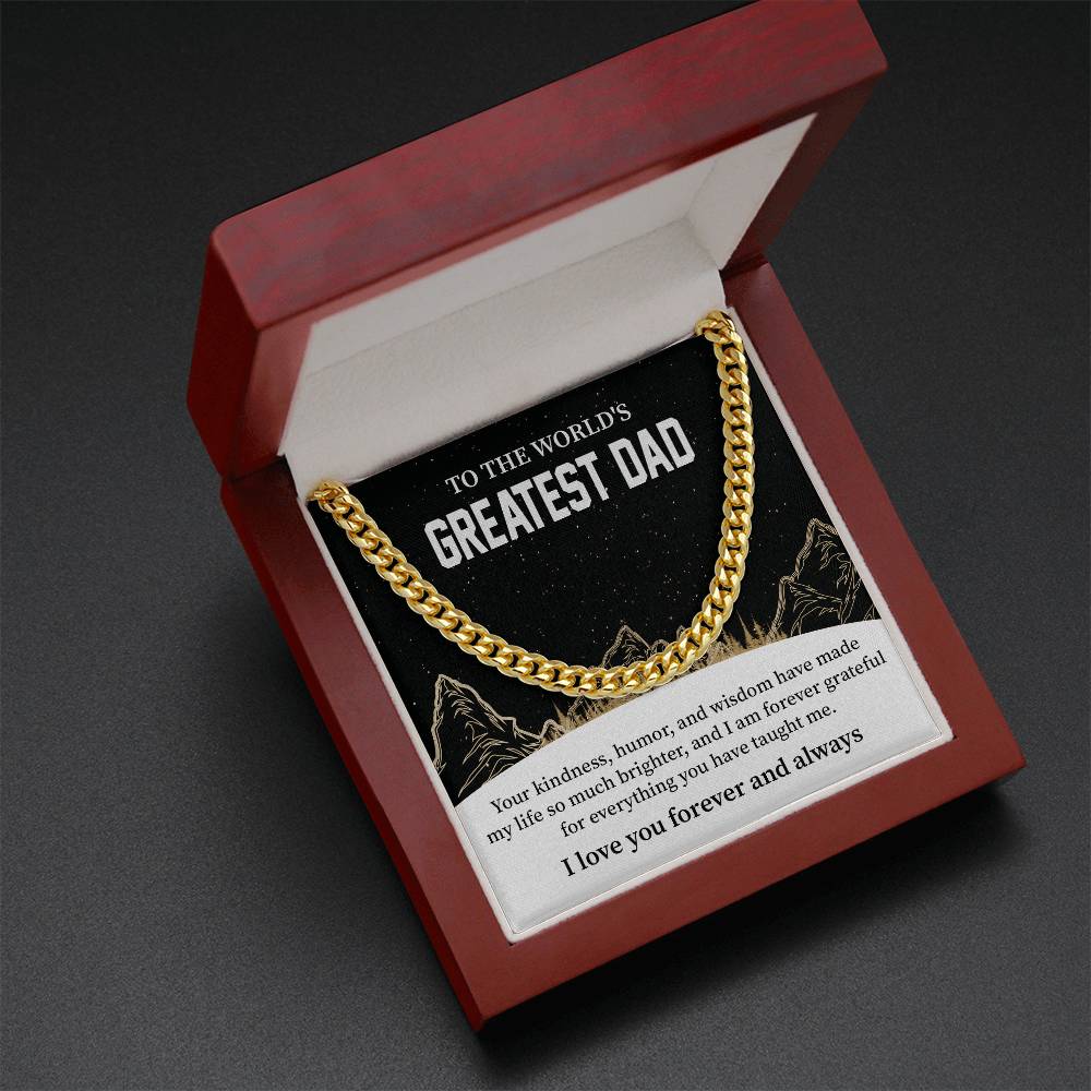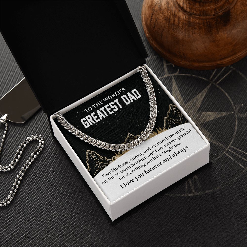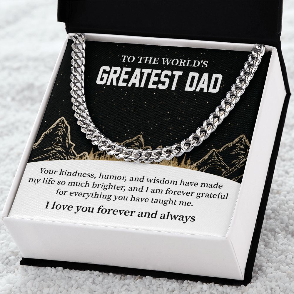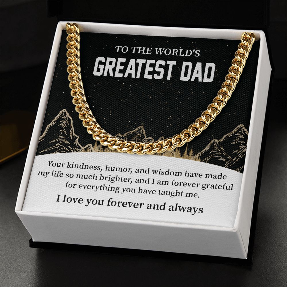 Celebrate your dad’s kindness, humor, and wisdom with this striking Cuban Link Chain necklace. A perfect gift to honor the world’s greatest father.