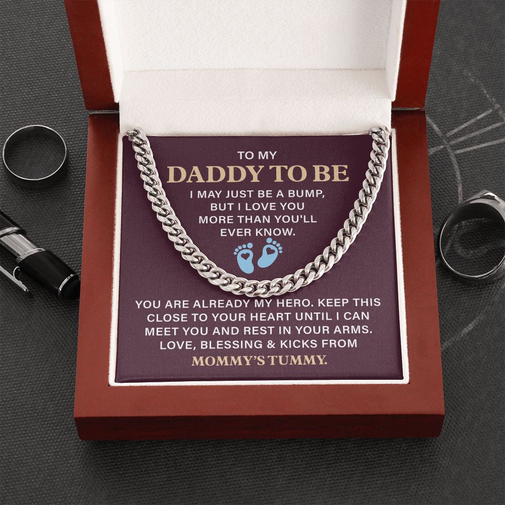Celebrate a soon-to-be daddy with this meaningful Cuban Link Chain necklace. A heartwarming reminder of the love growing even before baby arrives.