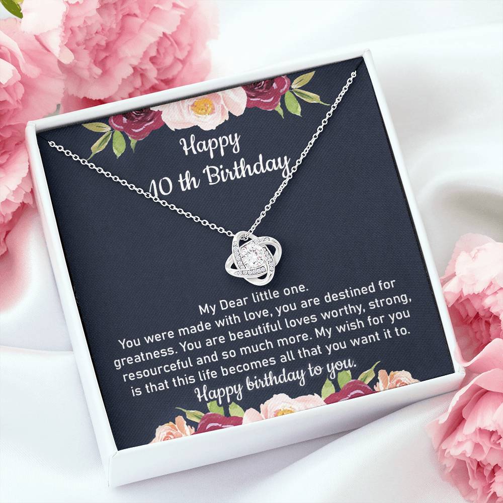 Celebrate her 10th birthday with a special keepsake that tells her how special and loved she really is. This necklace is a lovely present she’ll keep forever.