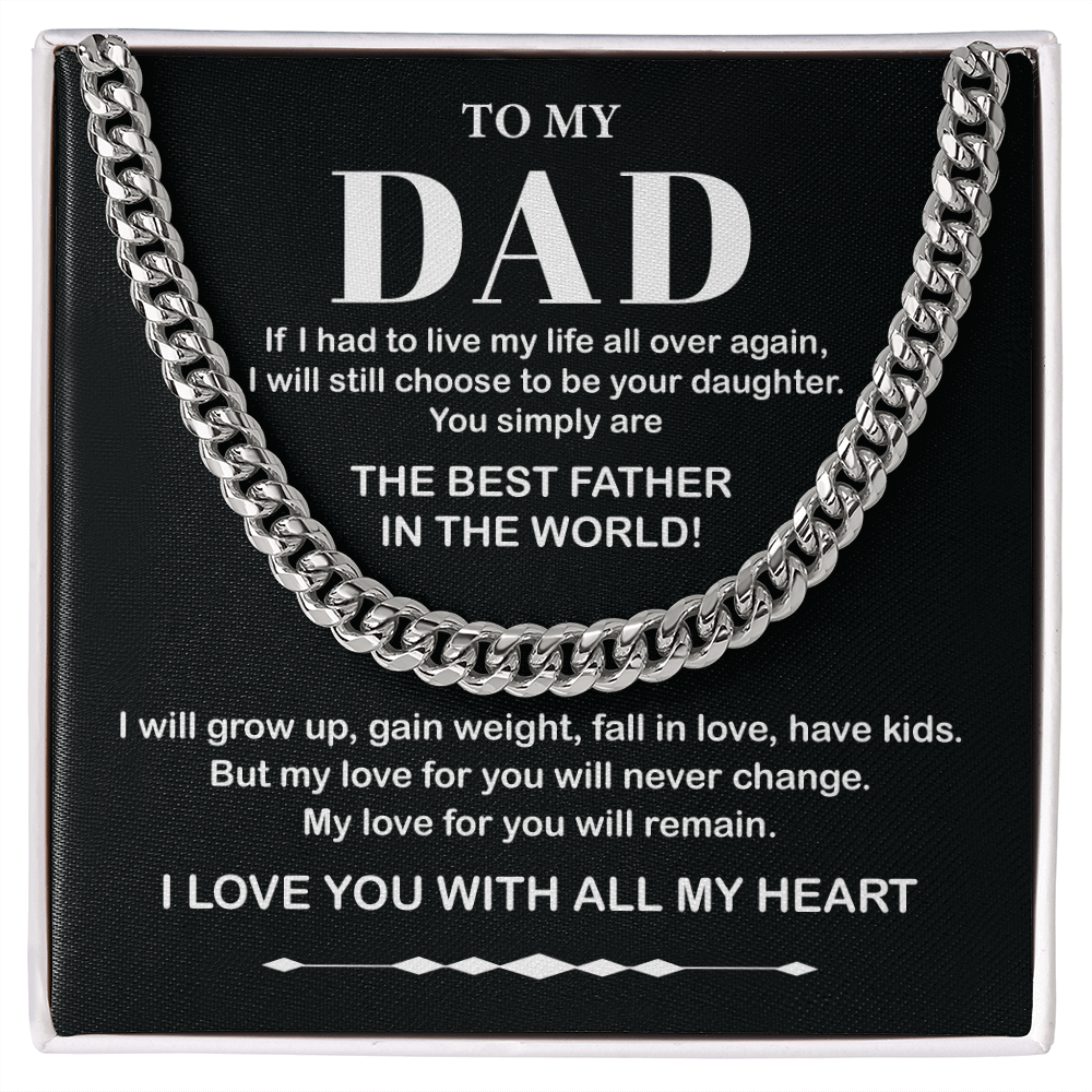 Show your appreciation for daughter-father love through this powerful Cuban Link Chain. The gift arrives with a touching message that makes it a strong representation of everlasting gratitude and affection.
