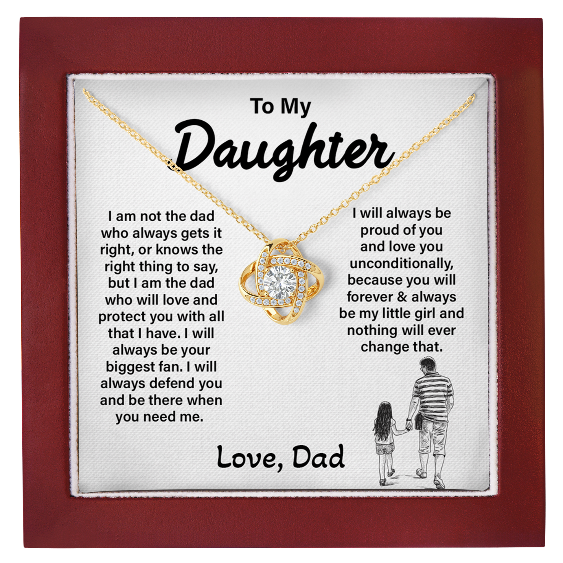 This Love Knot Necklace is more than just a present; it's a father's promise encapsulated in a lovely memento that she can treasure. A reminder that she will always be your little girl, regardless of how far or how much she develops.