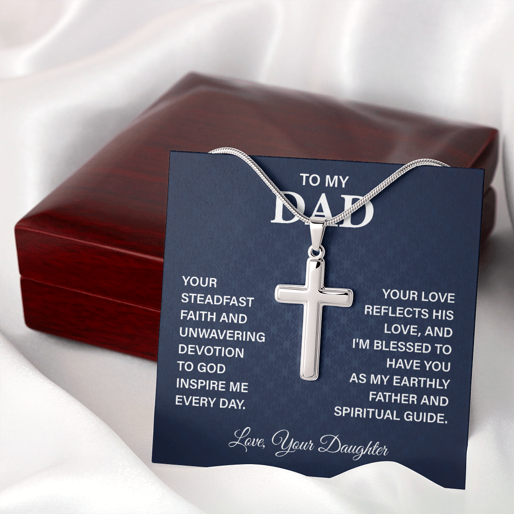 Honor your father's unyielding faith and deep love through this refined cross pendant which serves as a spiritual tribute to his dual role as your spiritual guide.