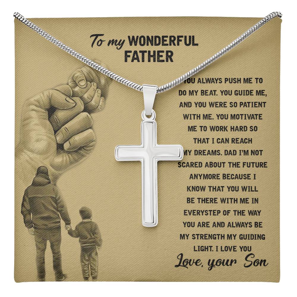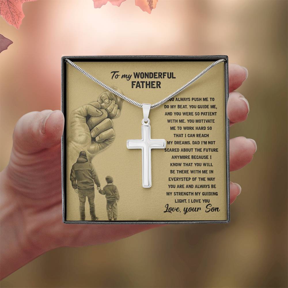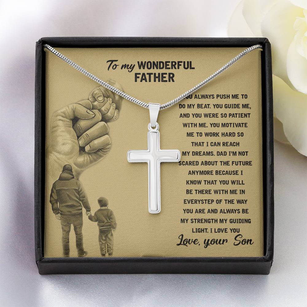 Father Cross Necklace Gift from Son – Inspirational Pendant with Heartfelt Message Card