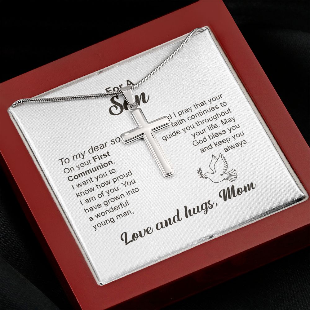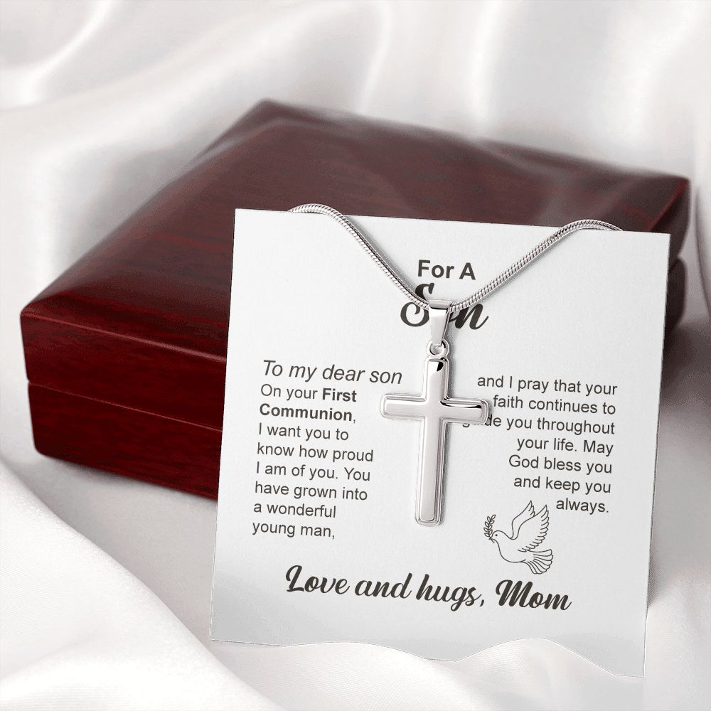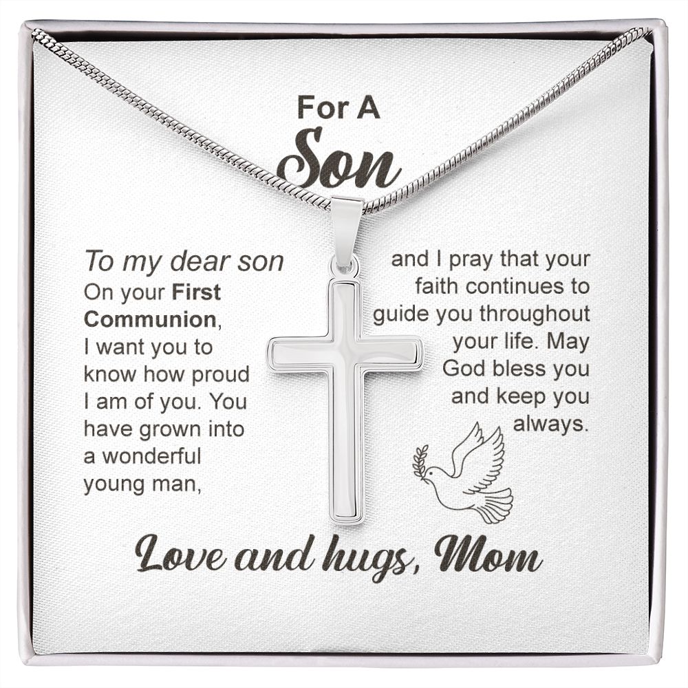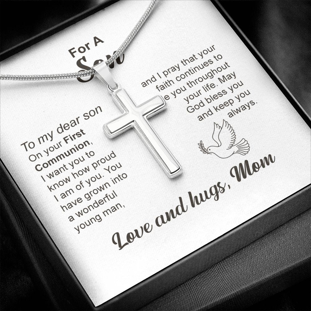 For A Son Cross Necklace Love And Hugs From Mom Gifts For Son First Communion With Heartfelt Message Card