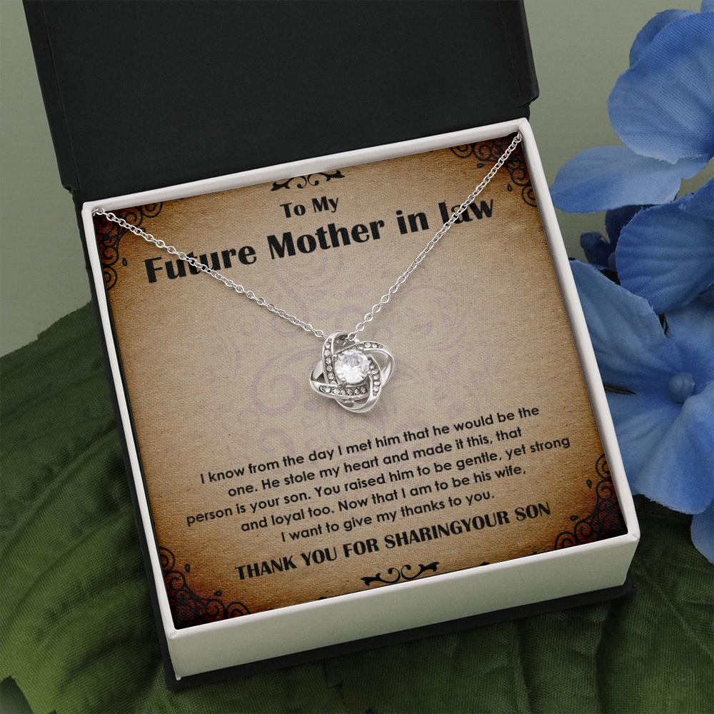 Choose a meaningful present to honor your future mother-in-law because it will convey the depth of your appreciation. A breathtaking necklace comes with a shining pendant and an antique message card which says:
