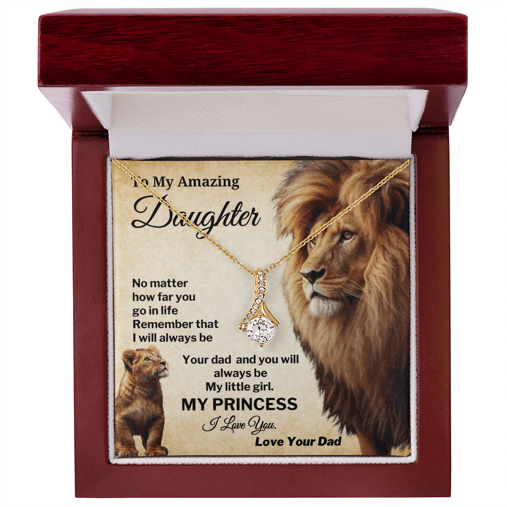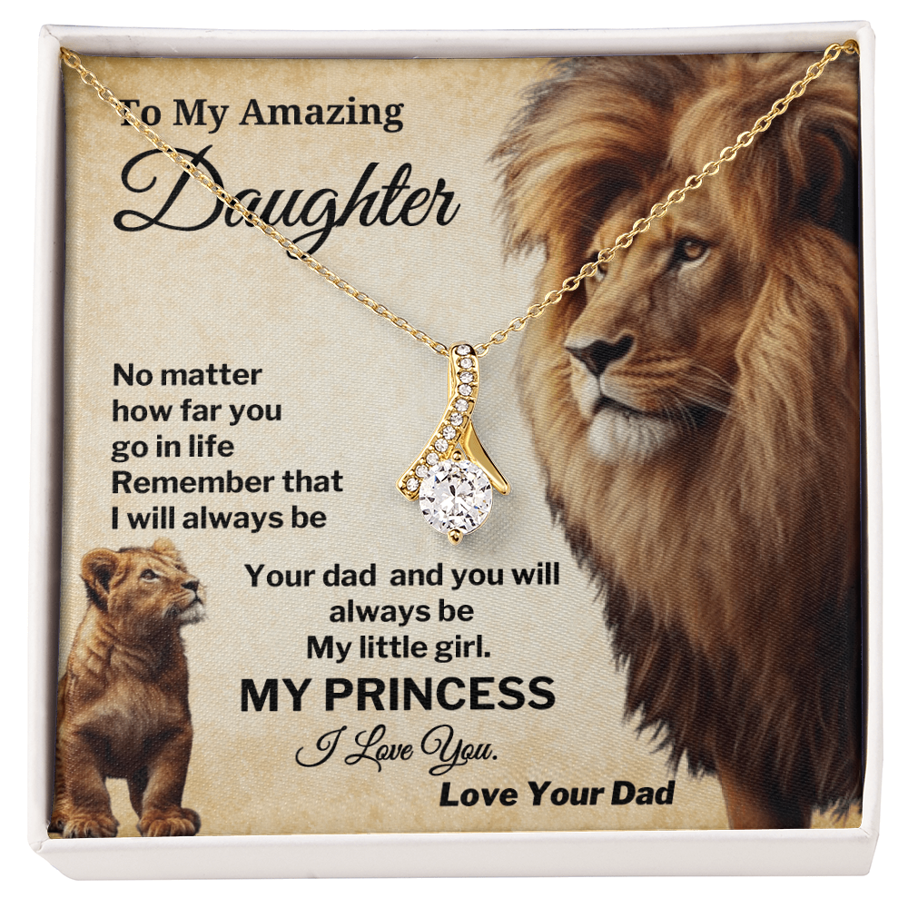 Celebrate the everlasting bond between a father and daughter with this powerful and touching necklace. Featuring a beautiful lion and cub illustration with a heartfelt "My Princess" message card, this gift is perfect for birthdays, graduations, or any proud moment.