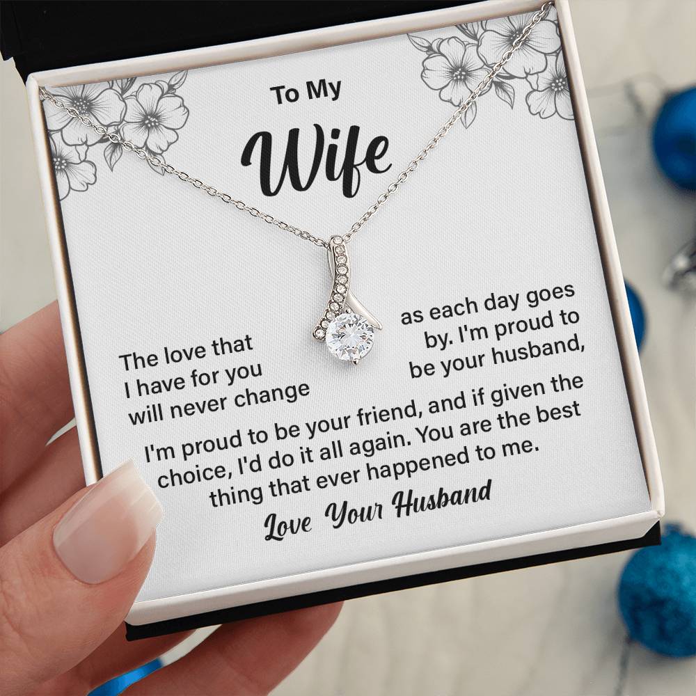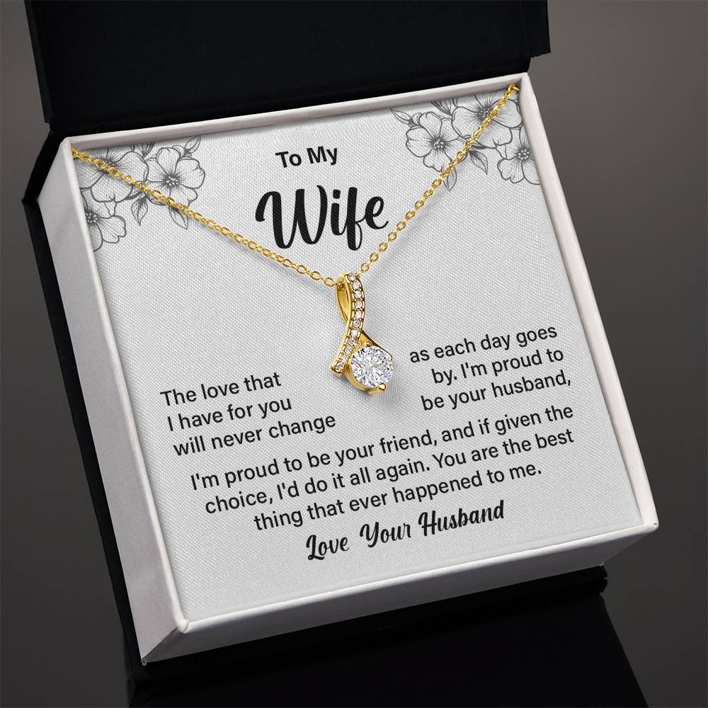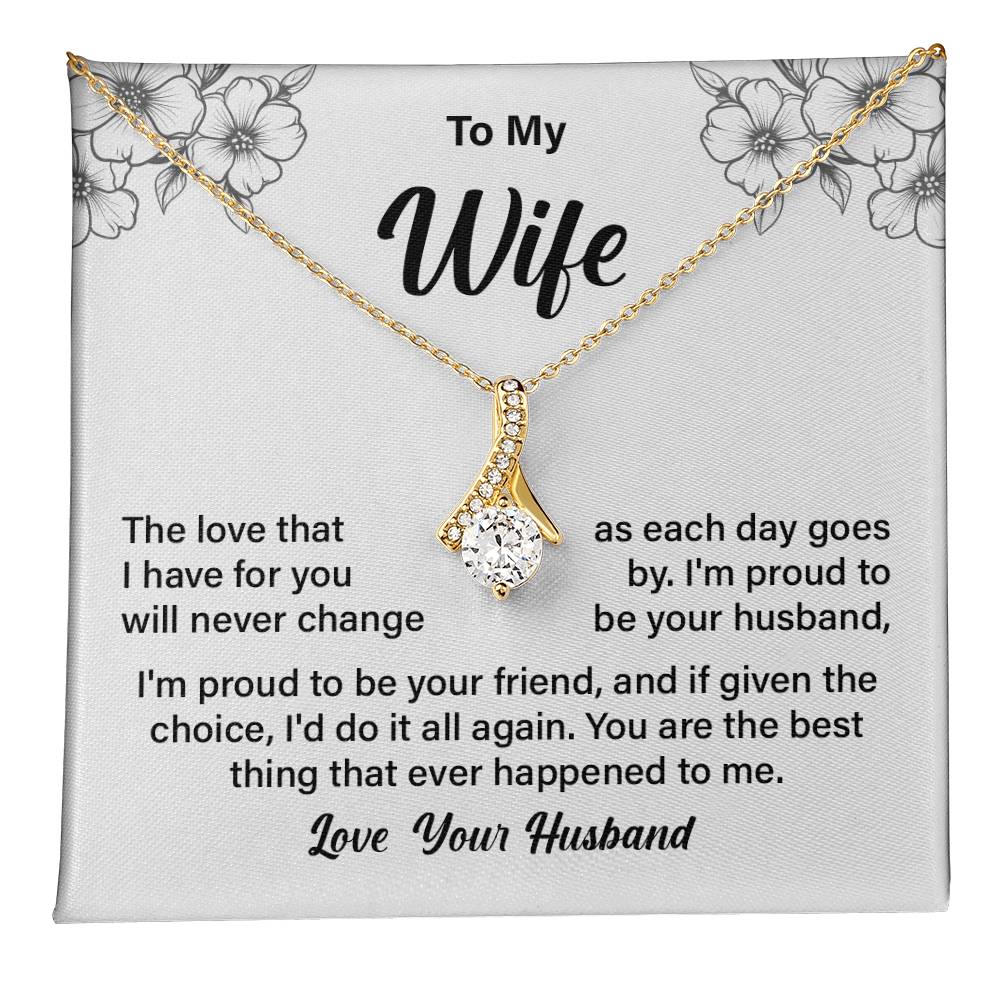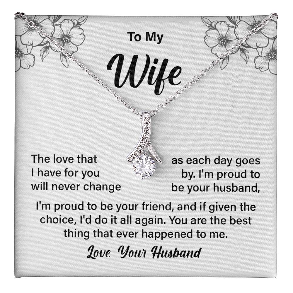 This romantic gift to your wife will celebrate your relationship. This necklace with a touching message will show your great love and devotion to her forever, whether you are celebrating an anniversary, surprising her on a Valentine Day or simply want to give her a just-because gift.