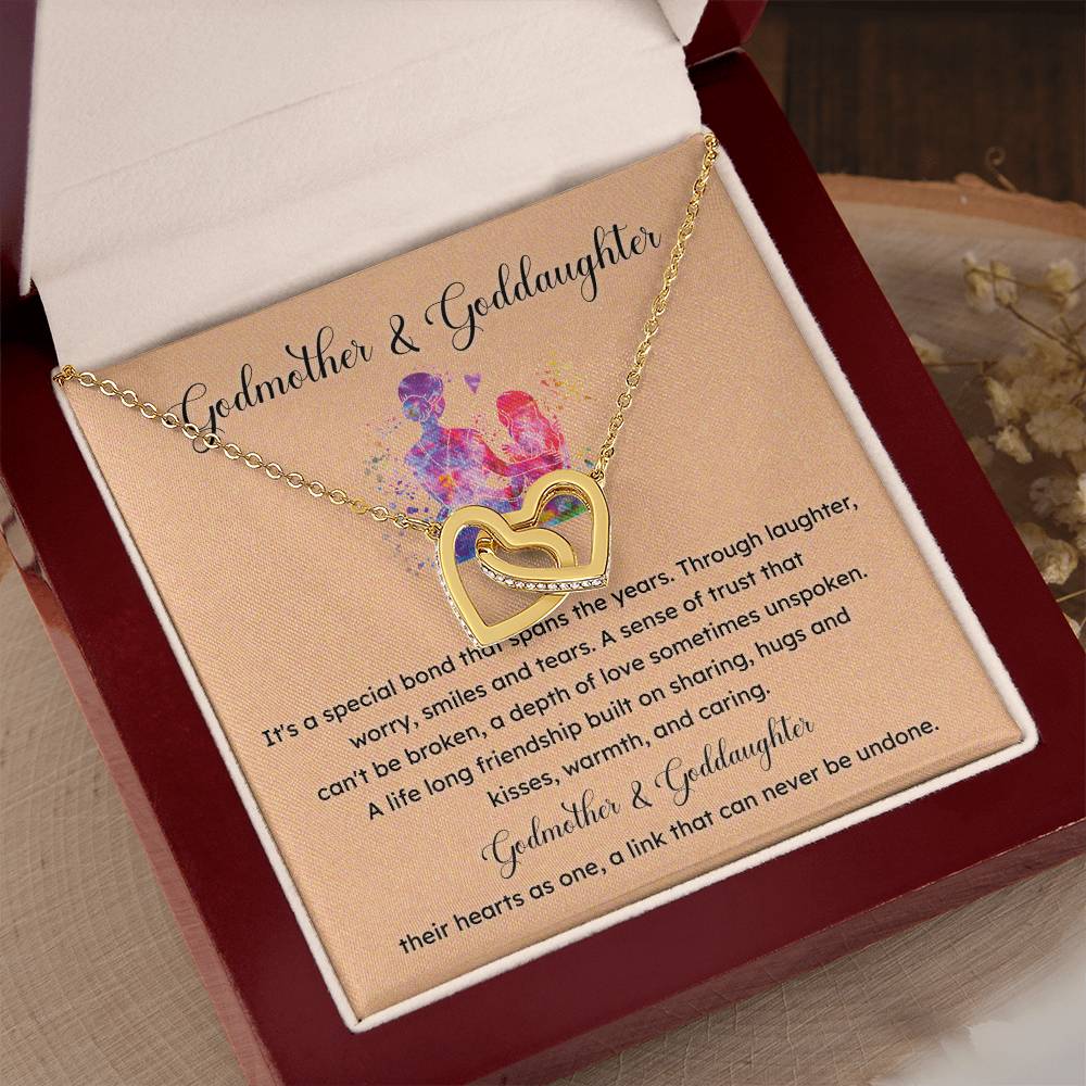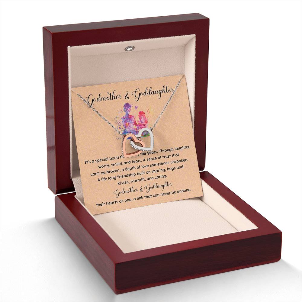 Mark a lovely relationship between godmother and goddaughter with this interlocking hearts necklace. This special jewelry is presented in a beautiful gift box with a sentimental message card and is the ideal gift to give on a birthday, baptism or any other special occasion where you want to express your lifetime bond.