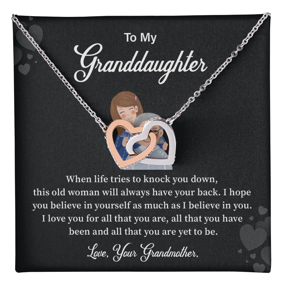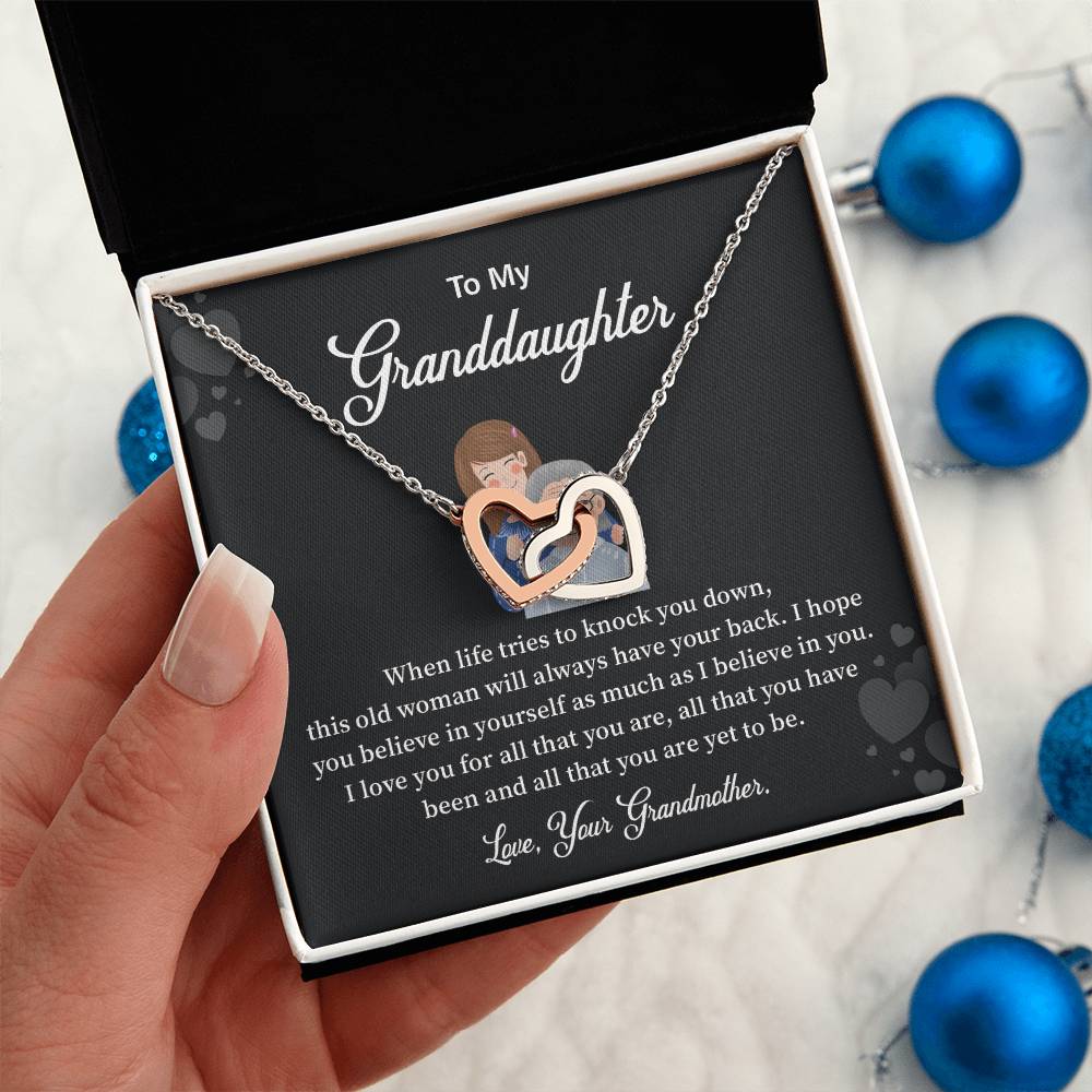 Help your granddaughter feel how loved and supported she is with this beautiful necklace gift. The interlocking hearts pendant has a heartfelt message from grandma – a heartwarming reminder of strength, belief, and unconditional love.