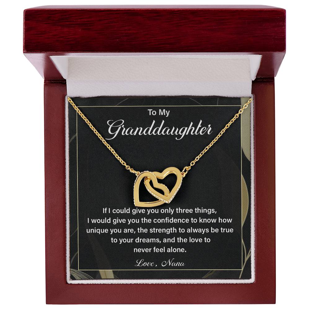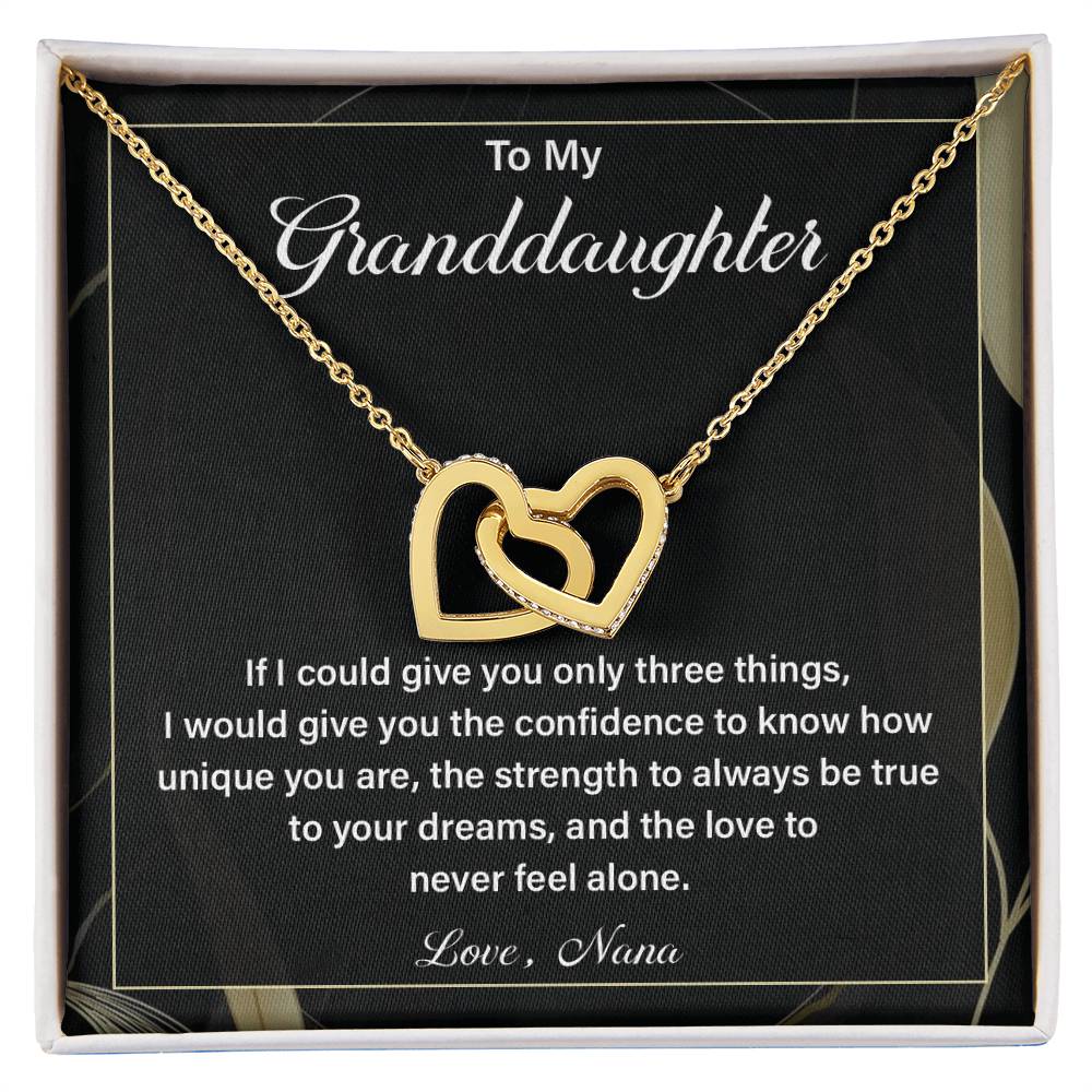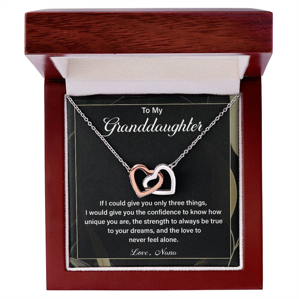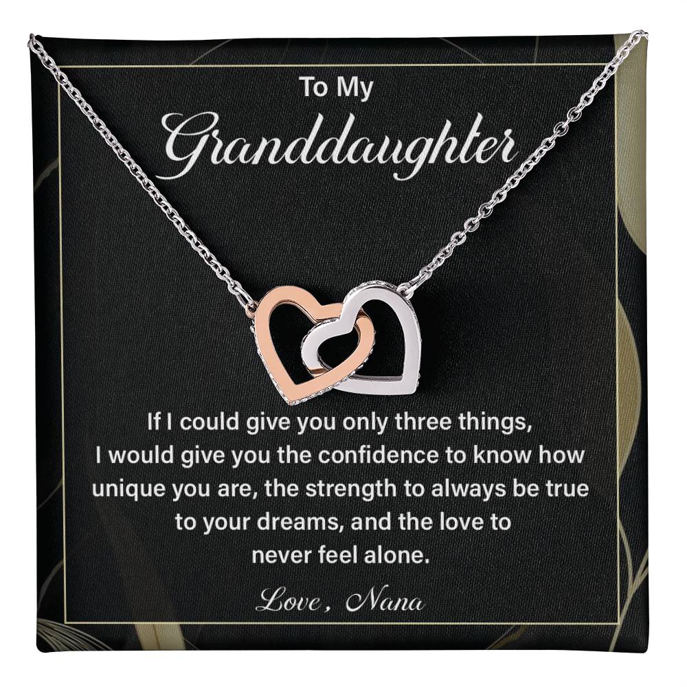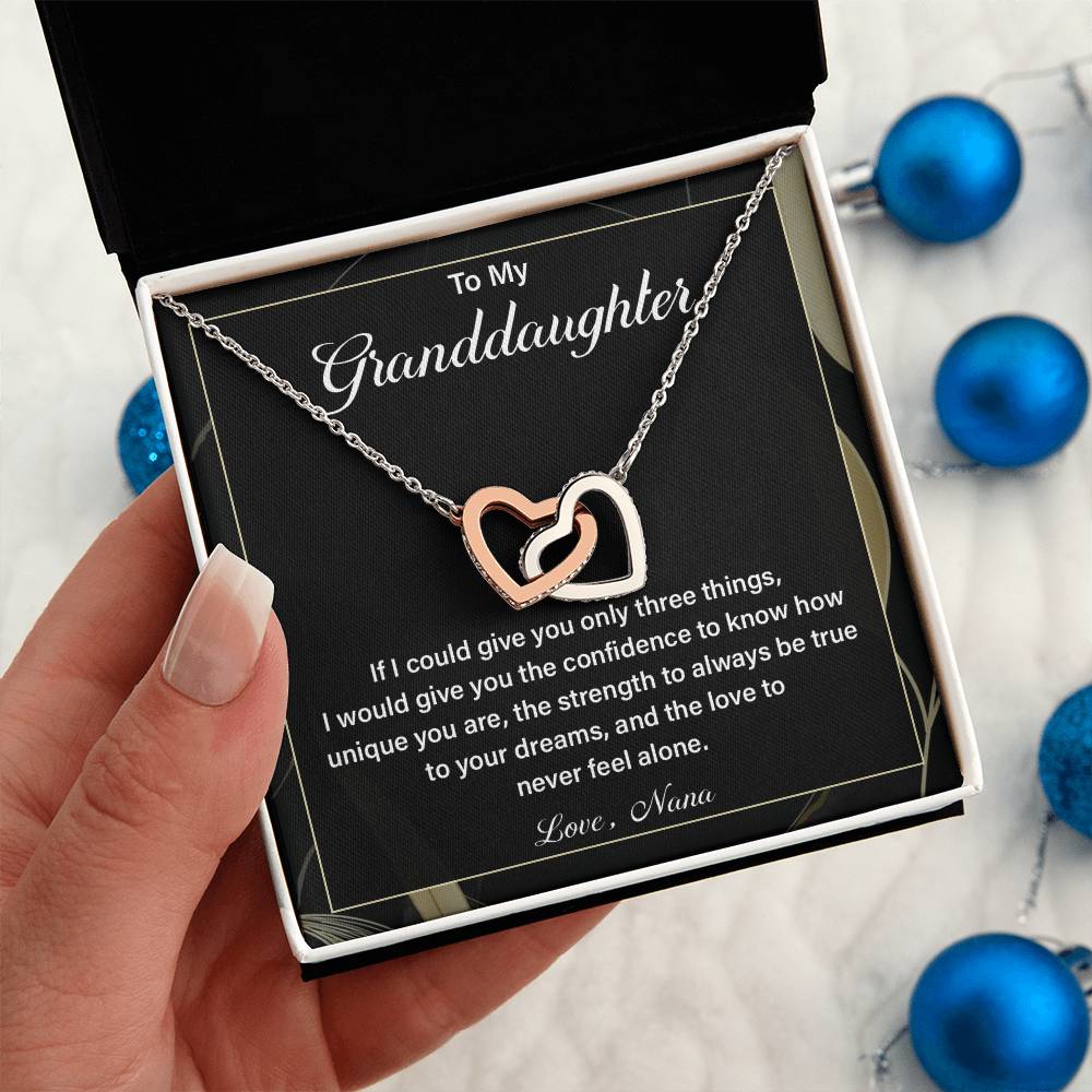 Celebrate your special relationship with this beautiful granddaughter necklace from Nana. With an elegant interlocking hearts pendant and a heartfelt message card, it is a lovely reminder of love, strength, and confidence.