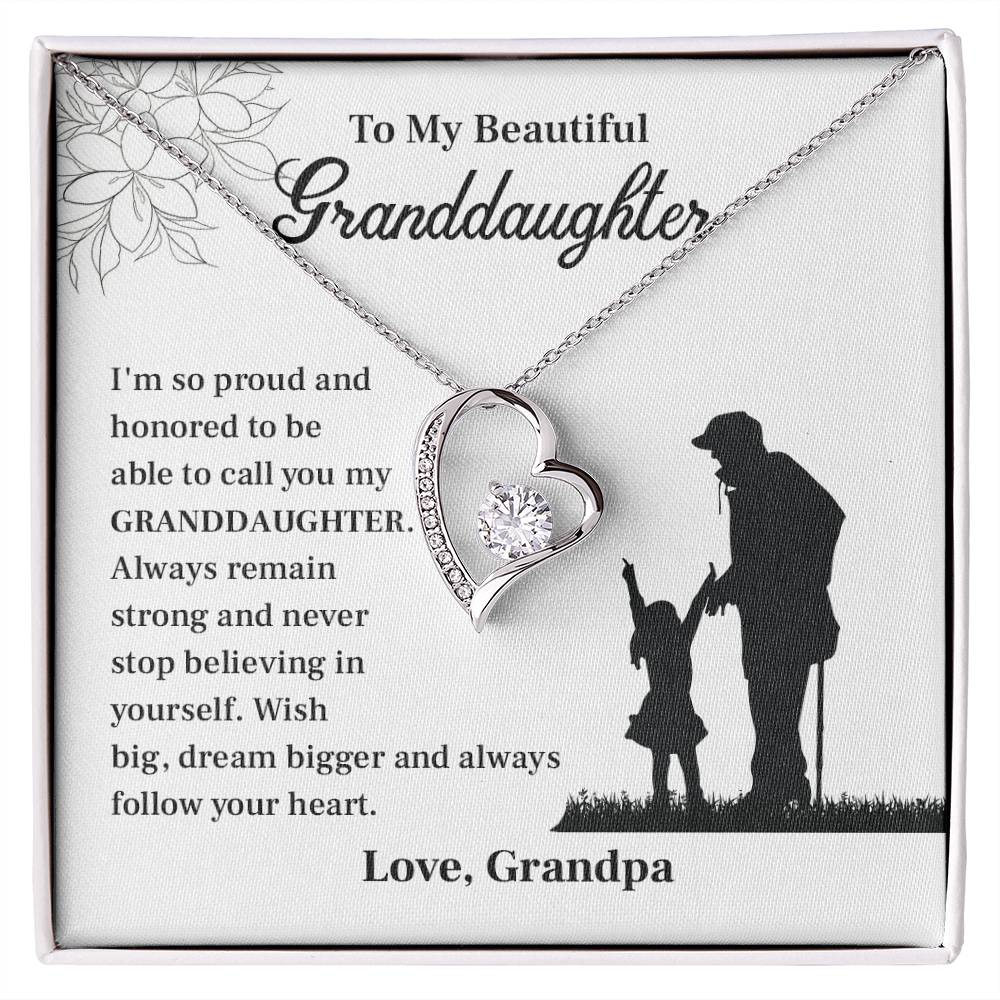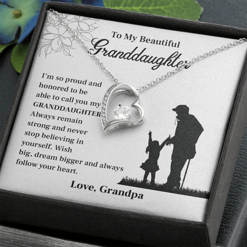 Be proud and show your love with this beautiful necklace of a granddaughter by Grandpa. This beautiful piece of jewelry is accompanied by a touching message card, so it is an ideal birthday present to granddaughter, a graduation jewelry by grandpa, or a grandparent to granddaughter gift. It is the sentimental necklace that you can wear on a special occasion or just because it is a sentimental necklace with powerful words and classic design.