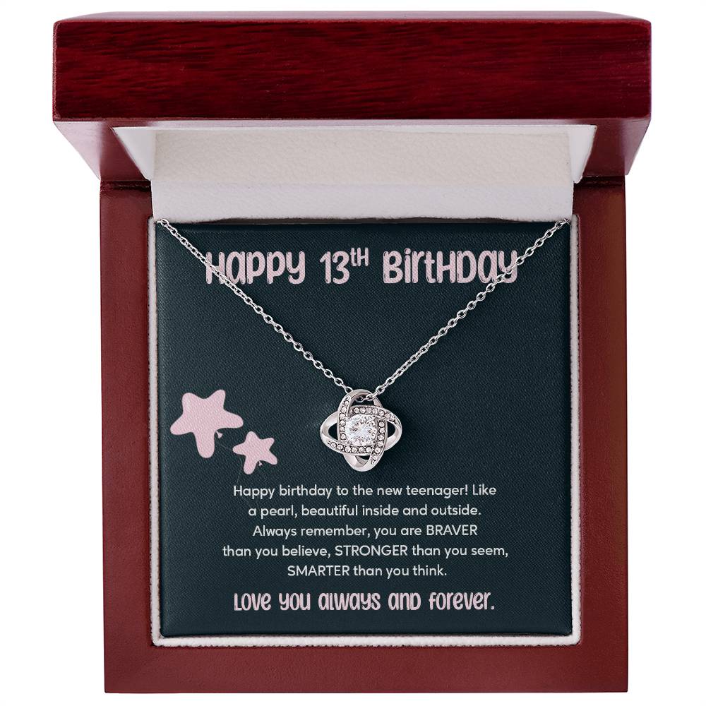 Make her 13th birthday special with this beautiful necklace gift. The crystal pendant and the message card with stars in it make this jewelry set a lovely way to honor her strength, beauty and personal growth. Gifted to daughters, nieces or granddaughters, this jewelry is elegant and very meaningful.