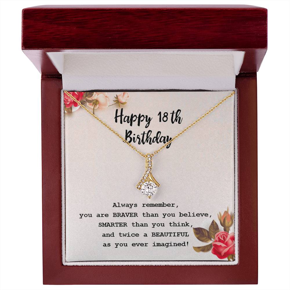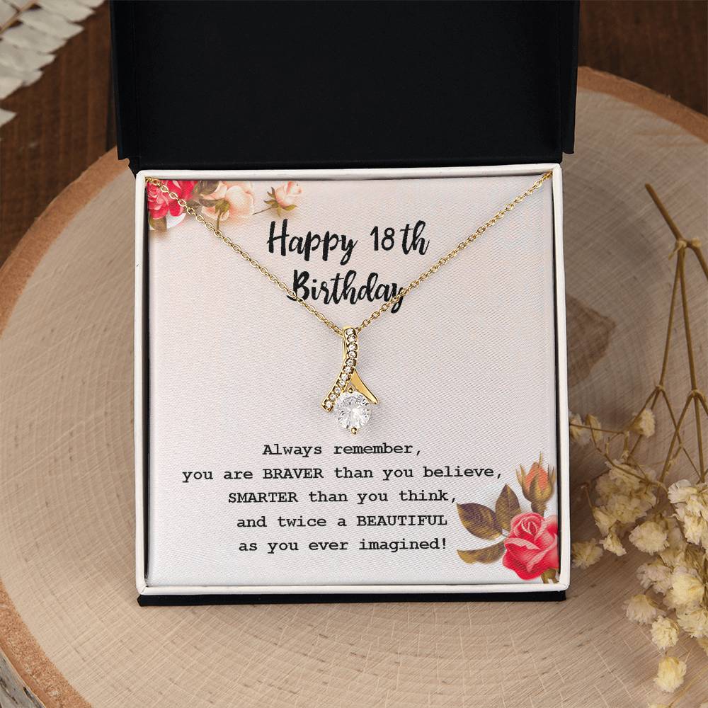 The age of 18 is a mighty step, and this necklace reflects the essence of this experience. This modern curved pendant with an inspirational message is an excellent birthday present to a strong, smart, and beautiful young woman.