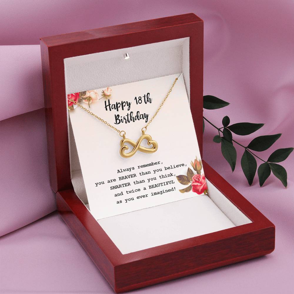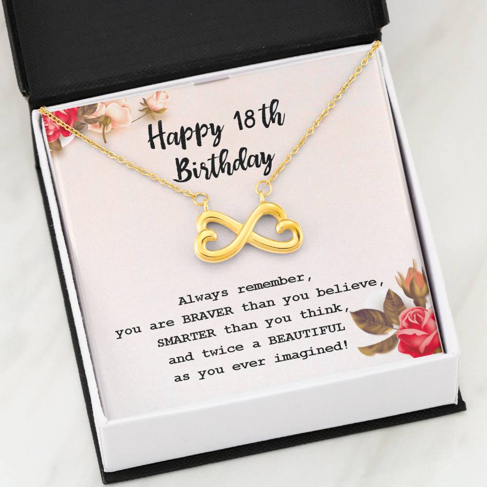 Give her a classic infinity heart necklace and the words of encouragement to celebrate her entry into adulthood. It is an ideal gift to any young woman who is 18 years old and this beautiful item is a constant reminder of how strong, smart, and beautiful she is.