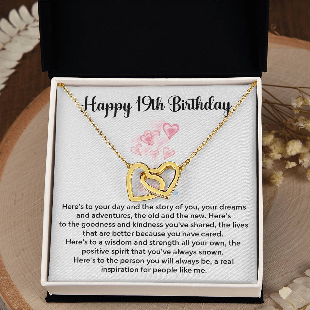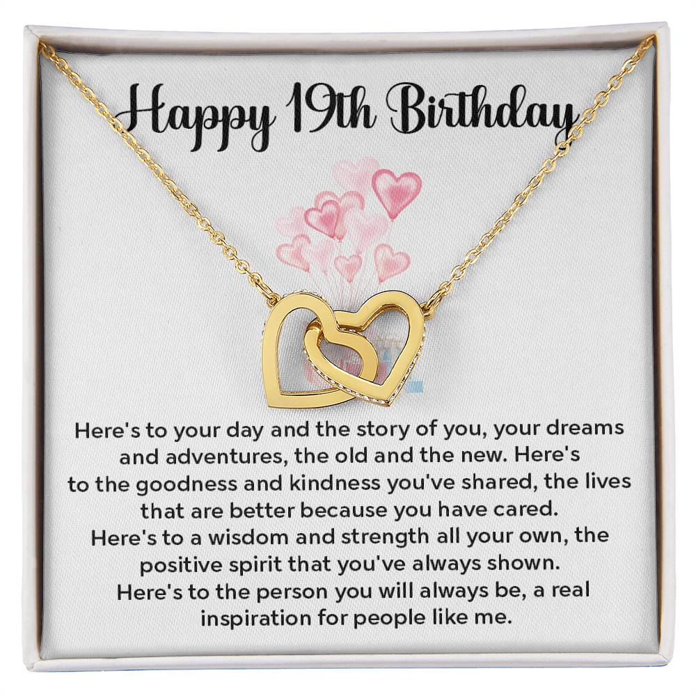 19th Birthday Interlocking Hearts Necklace – Gift Box & Card