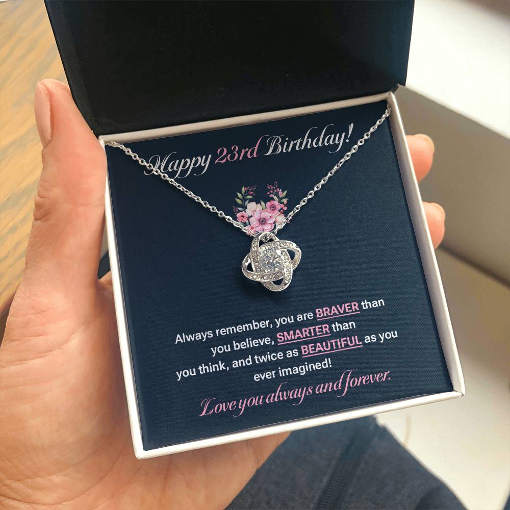 23rd Birthday Necklace for Her – Elegant Floral Gift Box Message