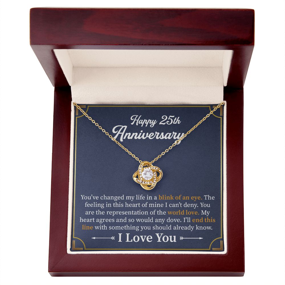 Imagine her reaction receiving this beautiful Love Knot Necklace. Representing an unbreakable bond between two souls, this piece features a beautiful pendant embellished with premium cubic zirconia crystals. Surprise your loved one with this gorgeous gift today!