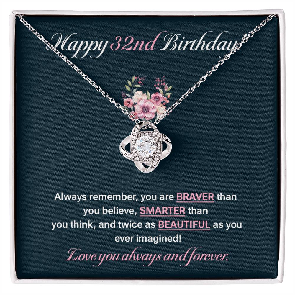 32nd Birthday Necklace Gift for Her – Elegant Love Knot with Card