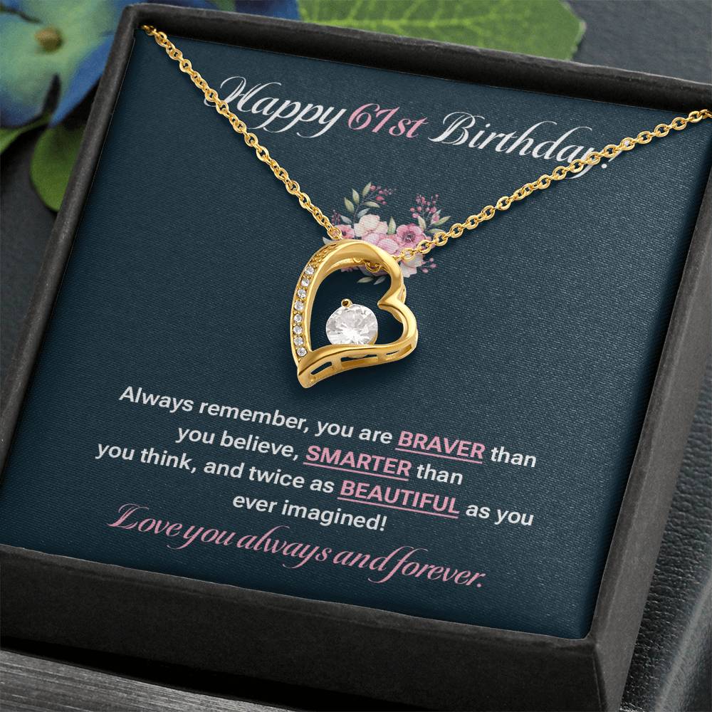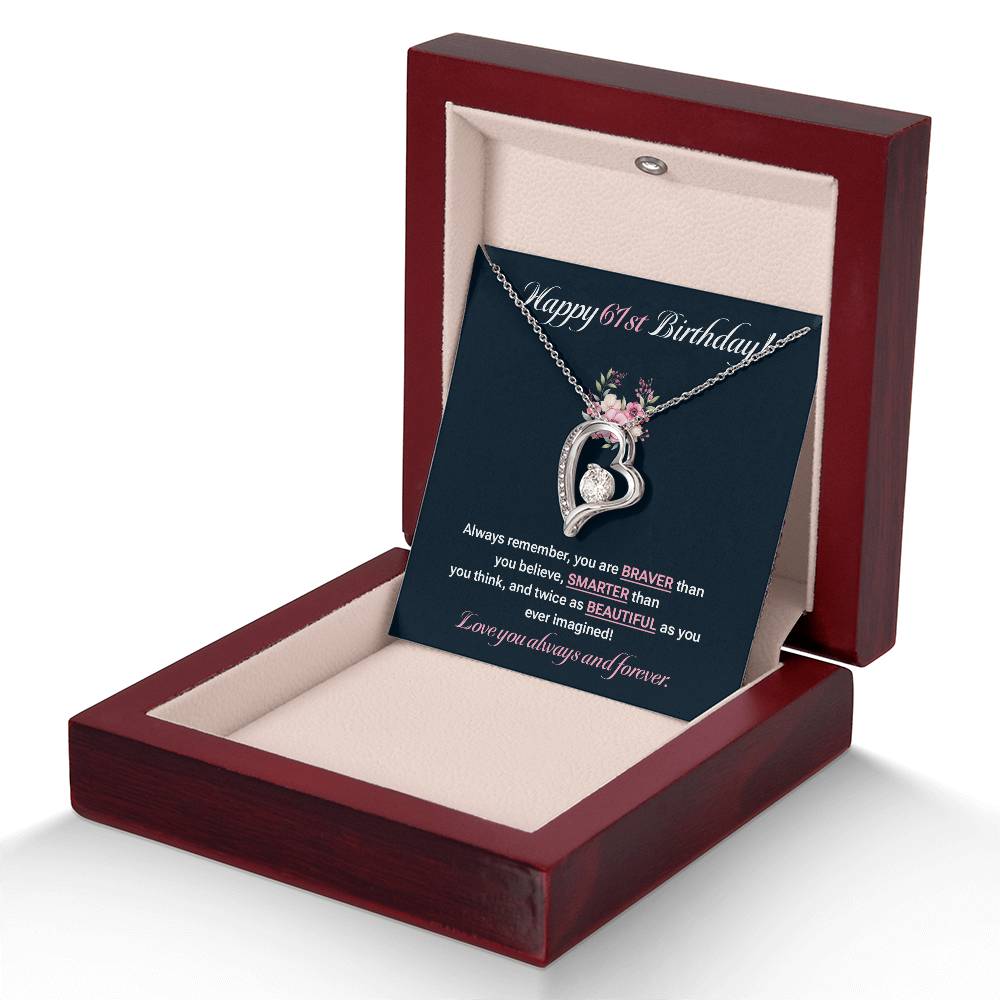 61st Birthday Necklace Gift for Her – Heart Pendant with Message Card