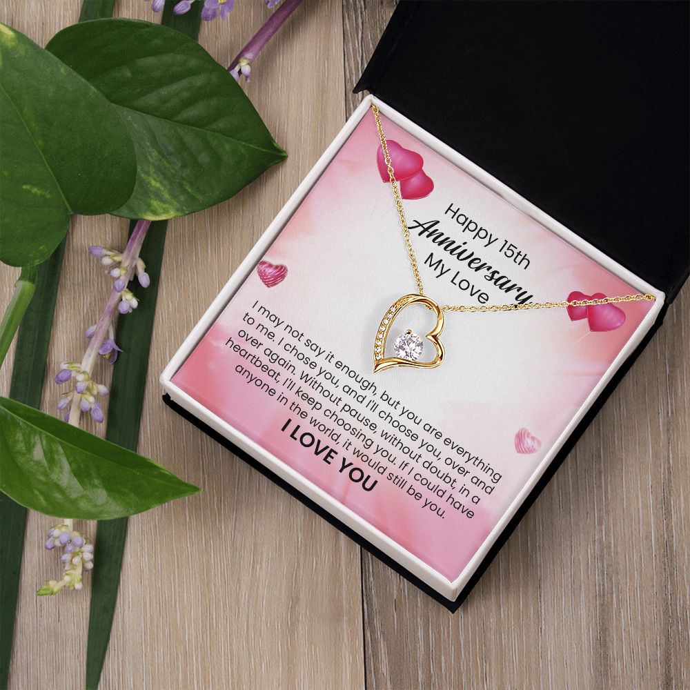 The dazzling Forever Love Necklace is sure to make her heart melt! This necklace features a stunning 6.5mm CZ crystal surrounded by a polished heart pendant embellished with smaller crystals to add extra sparkle and shine. Beautifully crafted with either a white gold or yellow gold finish, be sure to give her a classic gift she can enjoy everyday.