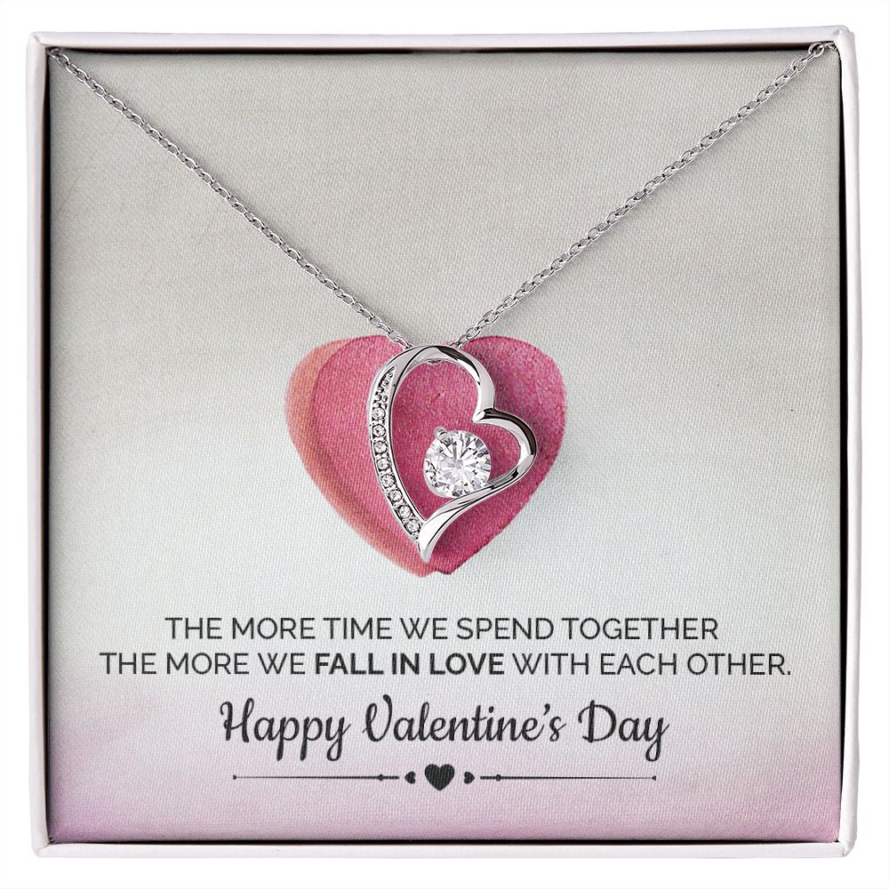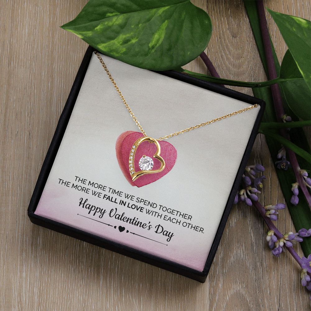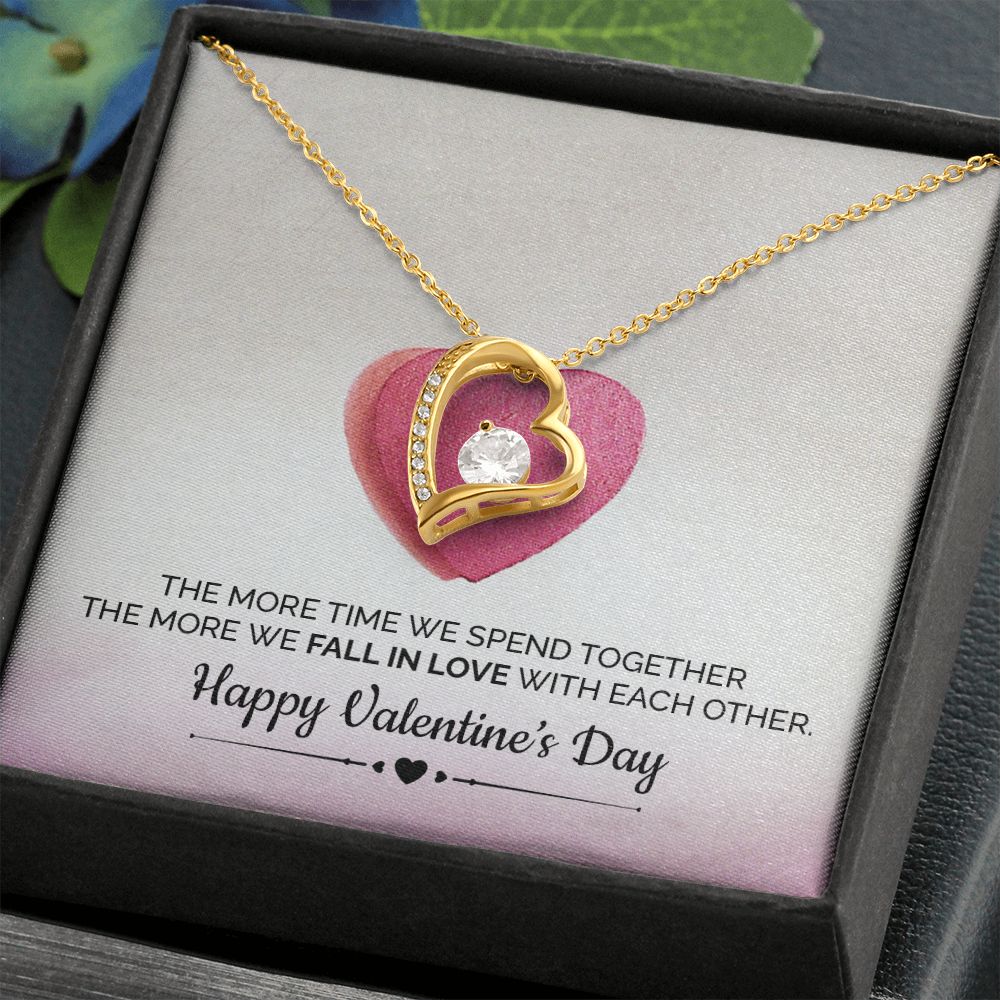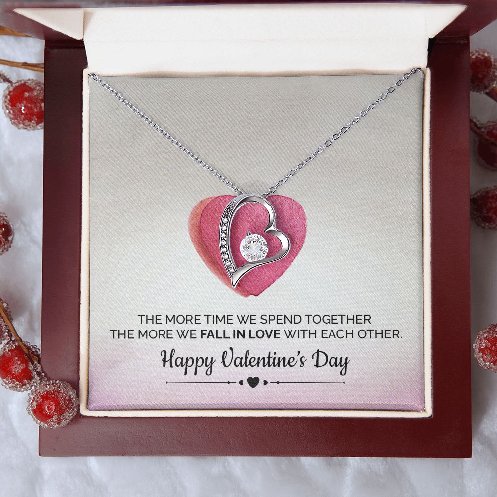 The dazzling Forever Love Necklace is sure to make her heart melt! This necklace features a stunning 6.5mm CZ crystal surrounded by a polished heart pendant embellished with smaller crystals to add extra sparkle and shine. Beautifully crafted with either a white gold or yellow gold finish, be sure to give her a classic gift she can enjoy everyday.