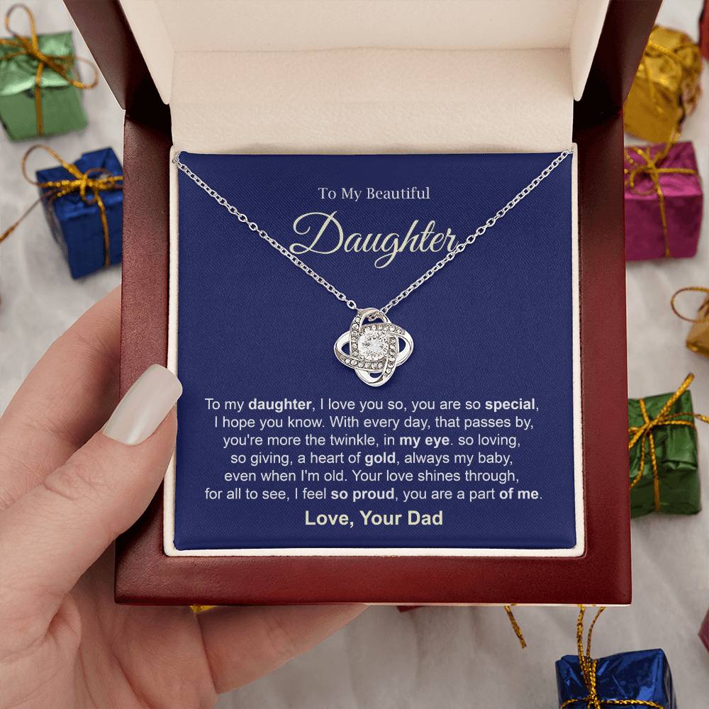 Show your daughter how much you love and care for her with a present that only a father can give. This lovely necklace, along with the message card, will remind her how much you care about her, both now and in the future.