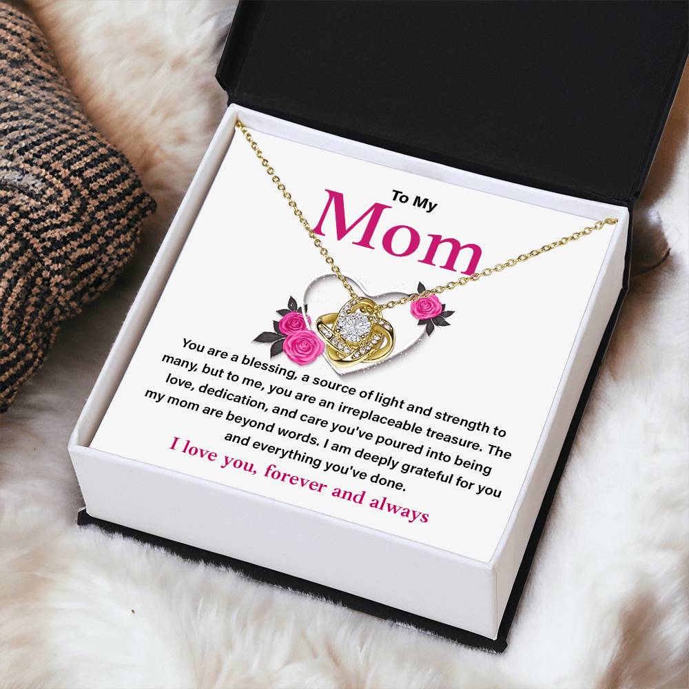 You are a blessing, a source of light and strength to many, but to me, you are an irreplaceable treasure. The love, dedication, and care you've poured into being my mom are beyond words. I am deeply grateful for you and everything you've done.
