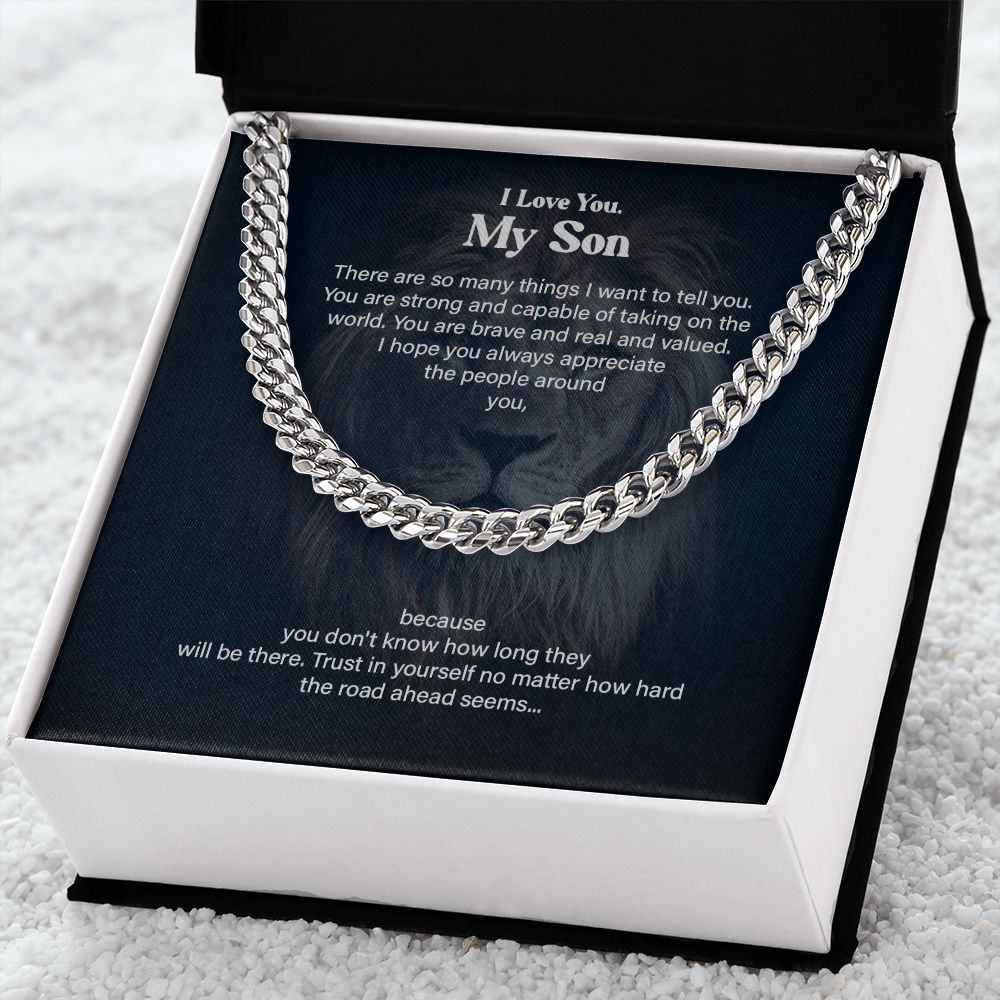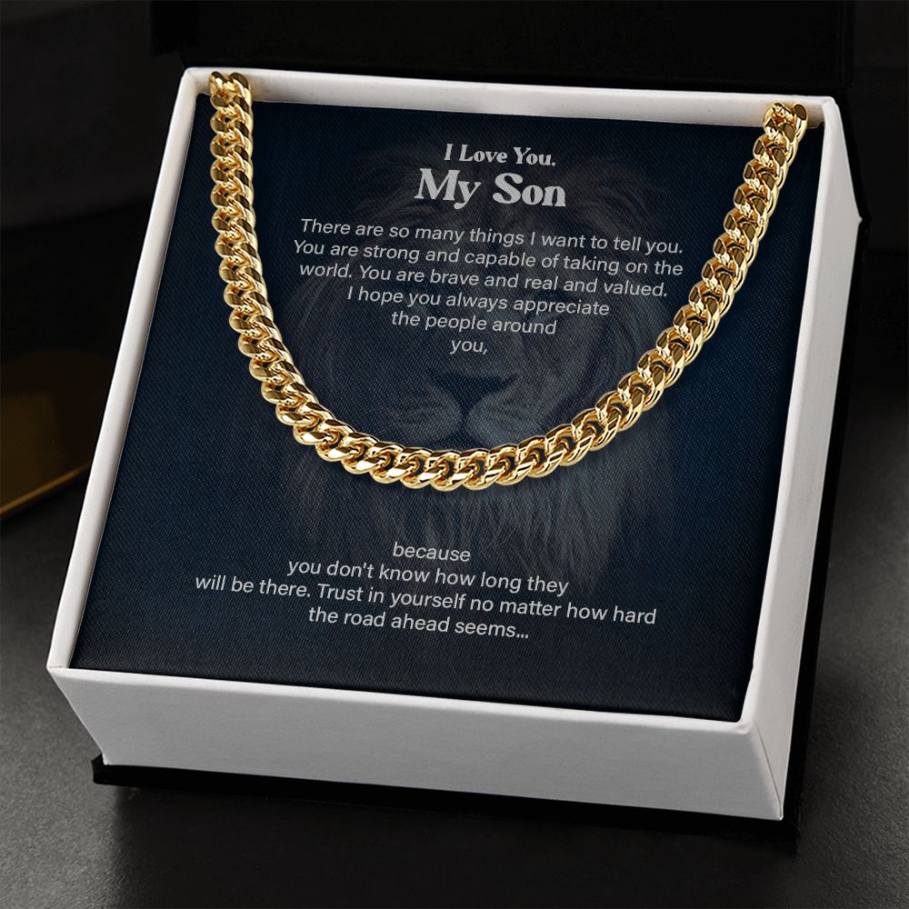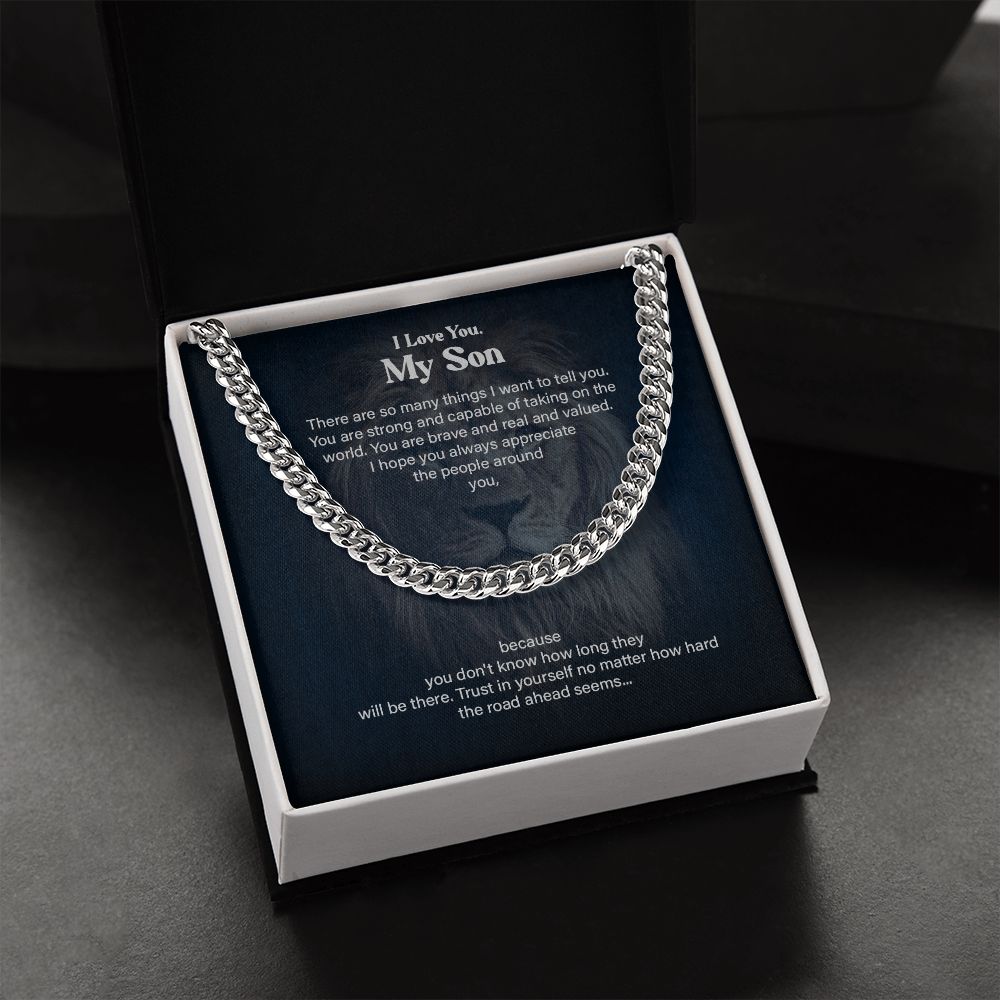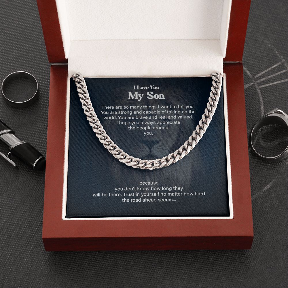 I Love You My Son From Dad And Mom - Heartfelt Gift With Message Card, Stainless Steel Cuban Link Chain