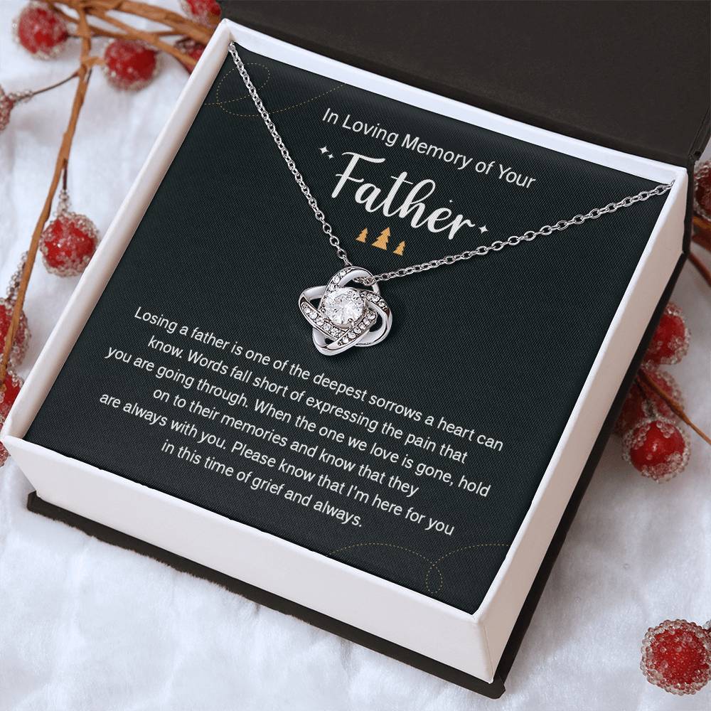 This memorial necklace with a Christmas theme is a touching sign of sympathy to any person who has lost his father. It is a comforting message with a lovely keepsake pendant that is warm, remembrance and love in the holiday season and beyond.