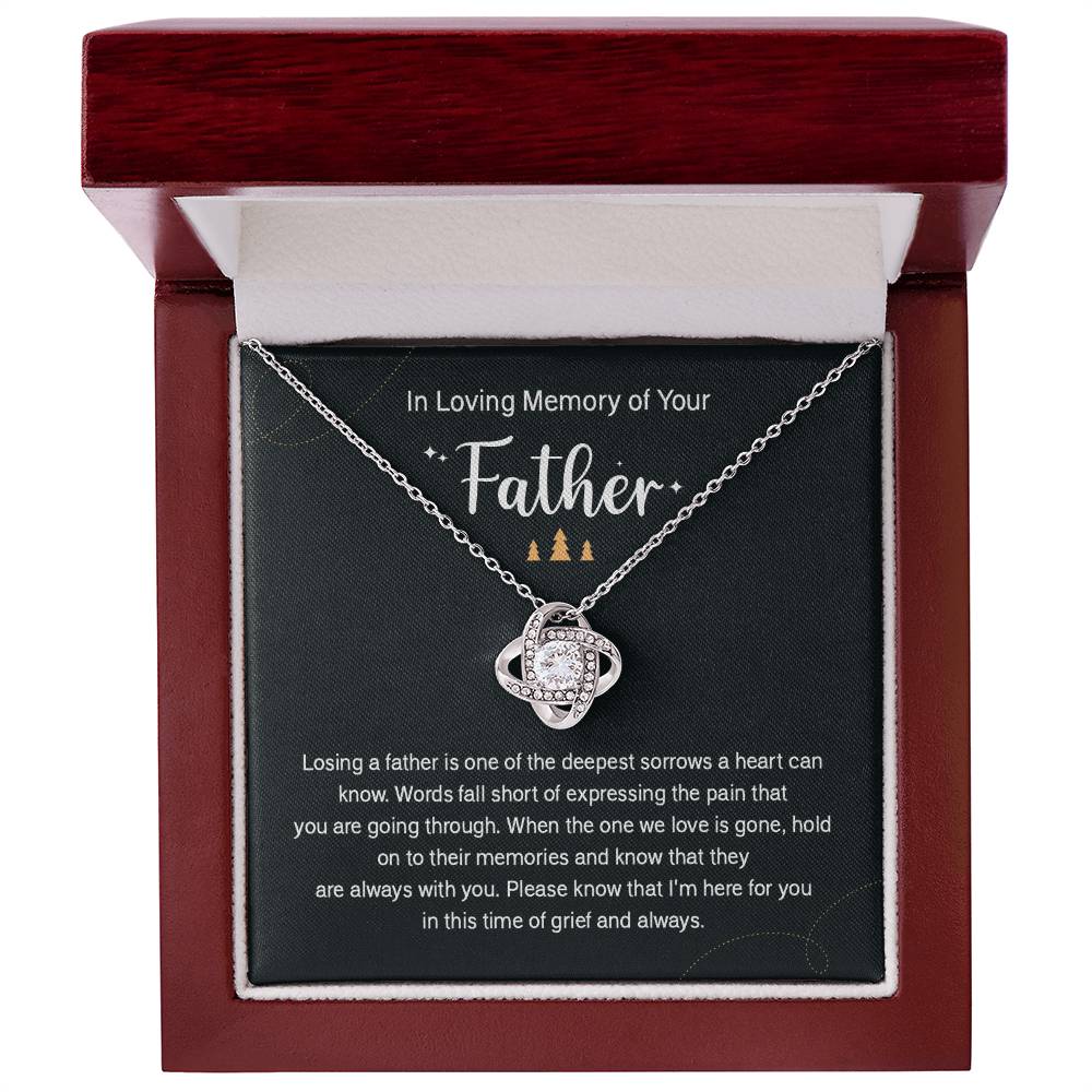 Losing a father is one of the deepest sorrows a heart can know. Words fall short of expressing the pain that you are going through. When the one we love is gone, hold on to their memories and know that they are always with you. Please know that I’m here for you in this time of grief and always.