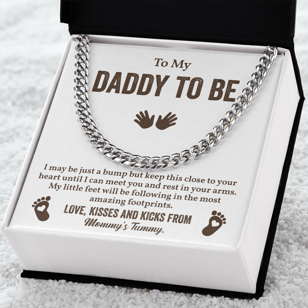 Daddy to Be Cuban Chain Gift From Baby Bump with Message Card