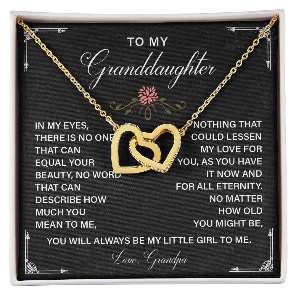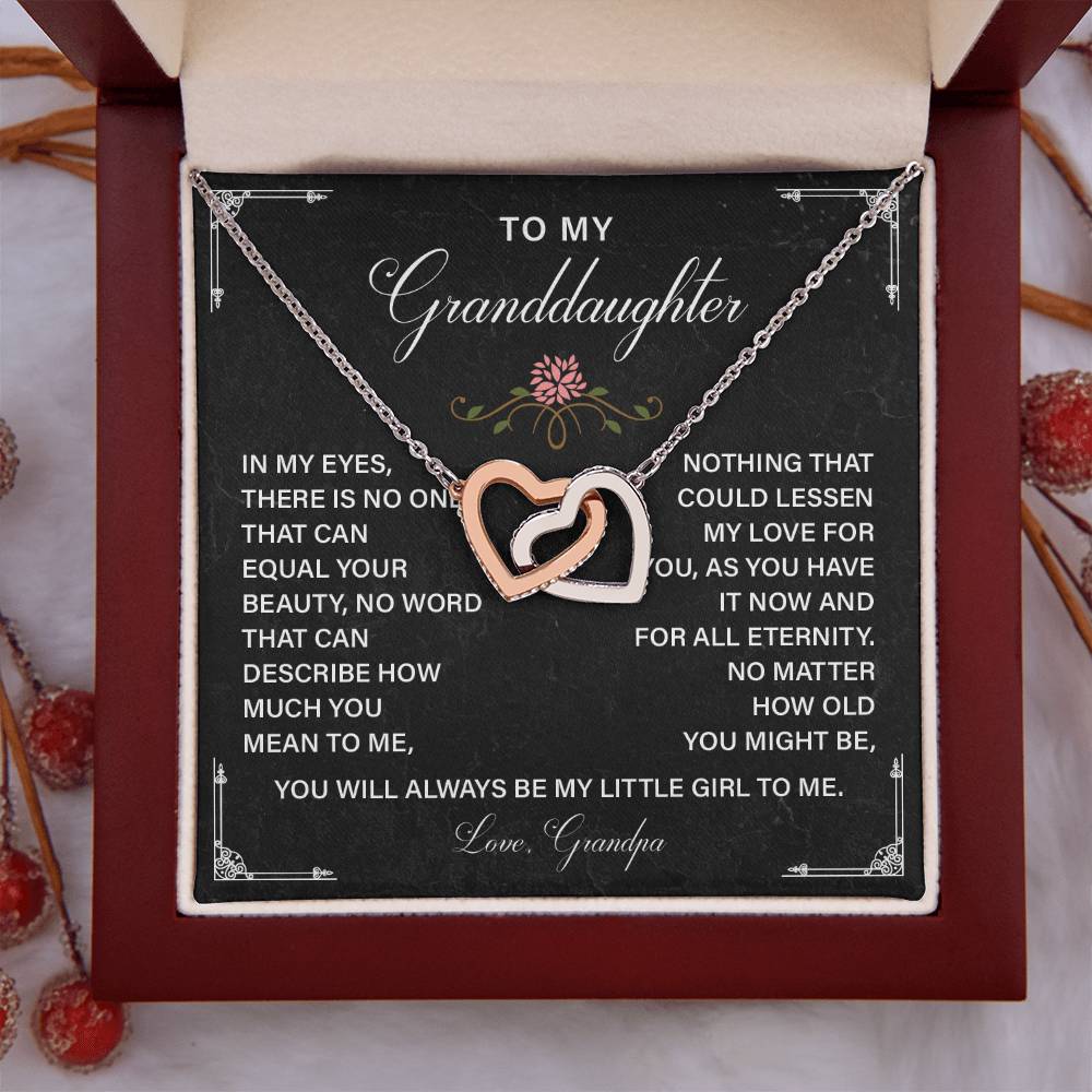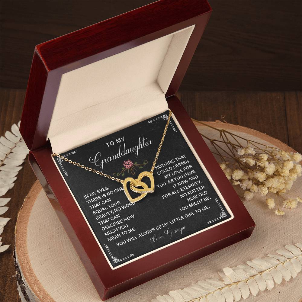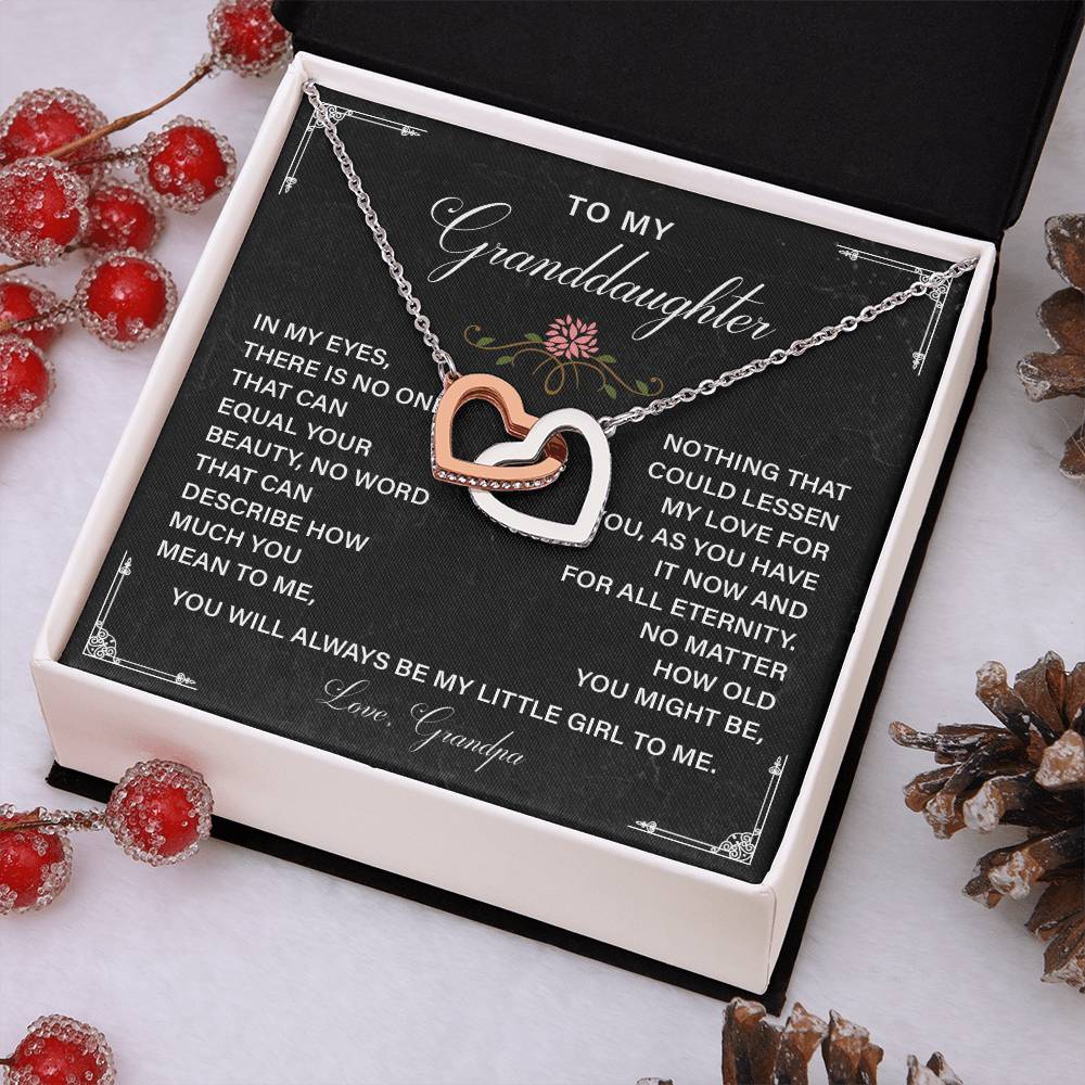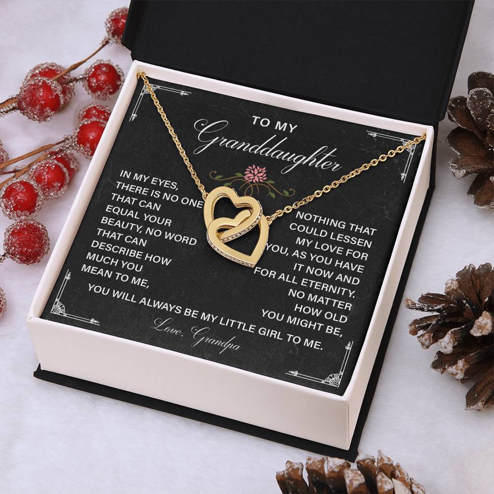 Looking to find a sentimental gift to granddaughter by grandpa? This interlocked heart necklace is accompanied by a lovely message card which conveys eternal love. It can be a birthday, Christmas, graduation, or just a present to say I love you, but it is something that she will keep forever.