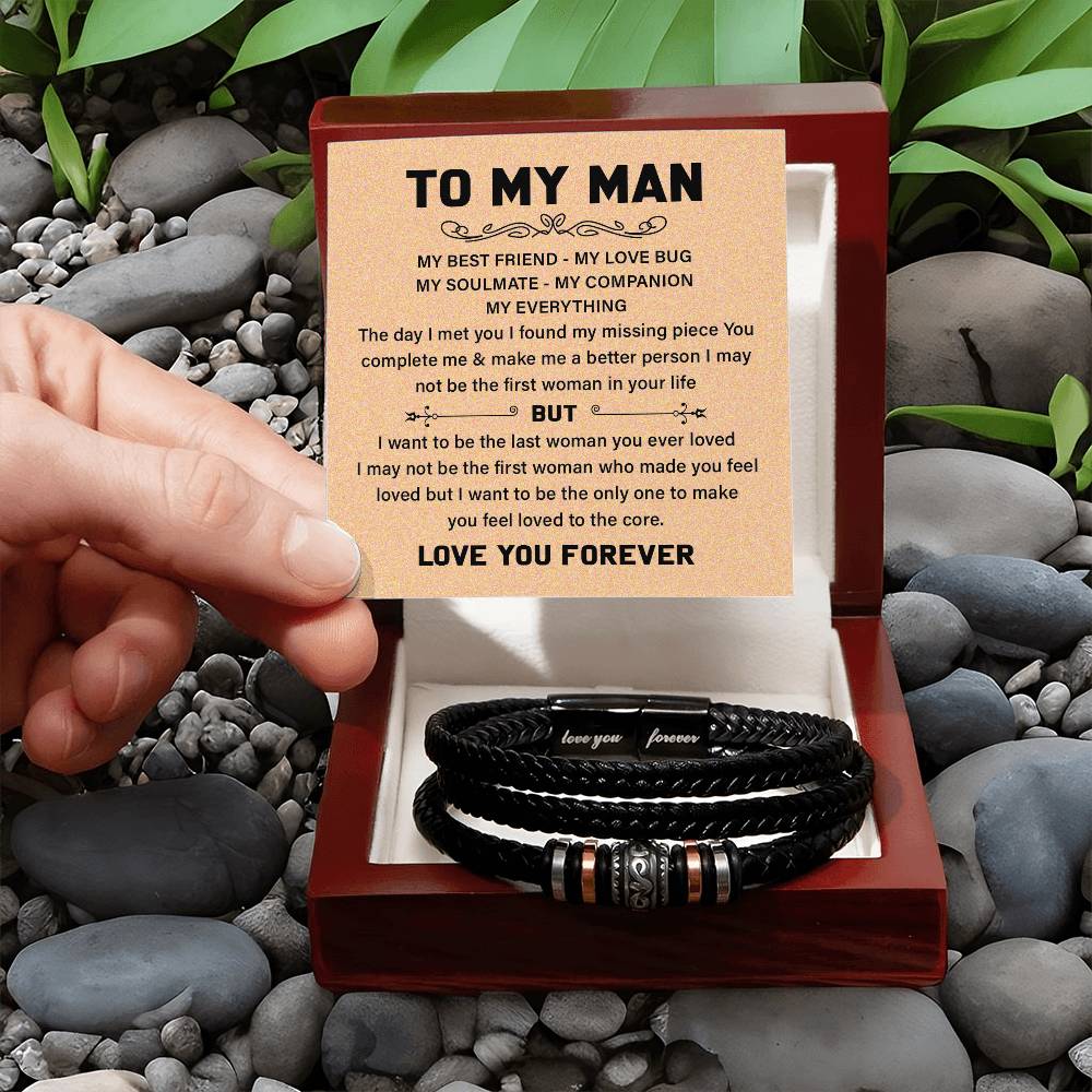 Looking for a special gift for your boyfriend, anniversary gift for a man or a romantic Valentine’s Day gift for your husband? The Men’s "Love You Forever" Bracelet is a popular romantic present for your partner, soulmate or future spouse. This men’s bracelet is ideal for boyfriends, husbands or fathers and it’s especially great for gifts like gifts for boyfriend from girlfriend, husband birthday presents or Christmas gifts for men from wife. Since it’s both stylish and meaningful, it’s a great present for guys who seem to have everything. Great for engagement gifts for men, gifts for grooms on their wedding day or gifts for partners who are apart.
