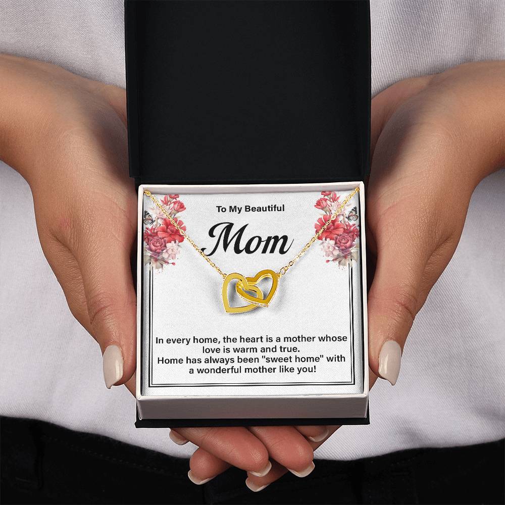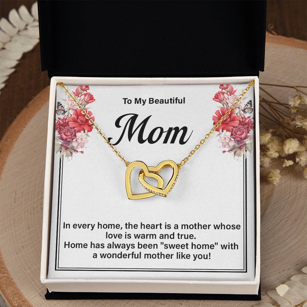 This is a wonderful gift for any mom who helps the house feel like a home. This gift which includes a "sweet home" card and a lovely interlocking heart necklace, is perfect for Mother’s Day, birthdays, Christmas or when you want to say thank you. An excellent way for daughters, sons or husbands to express their gratitude for a wonderful mother.